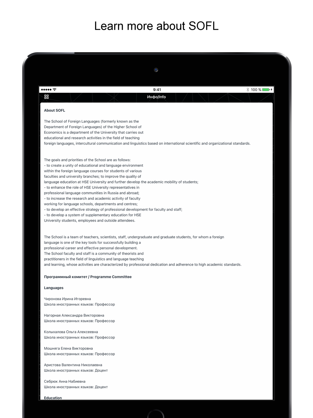 - create your own schedule and receive notifications about the beginning of the selected sessions;
