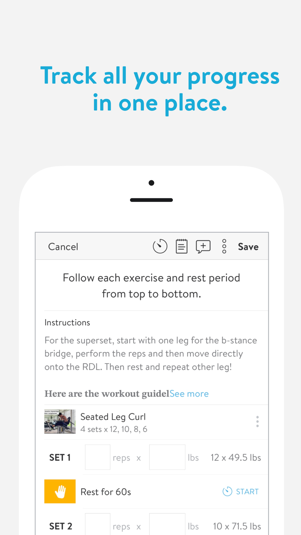 - Follow along to exercise videos with voice-overs, step-by-step instructions and learn the target muscle/position