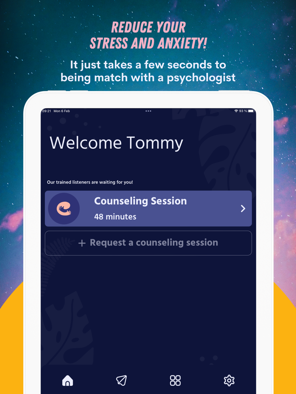 Have access to instant mental health support and depression app with trained listeners and psychologues for any burden you may have.