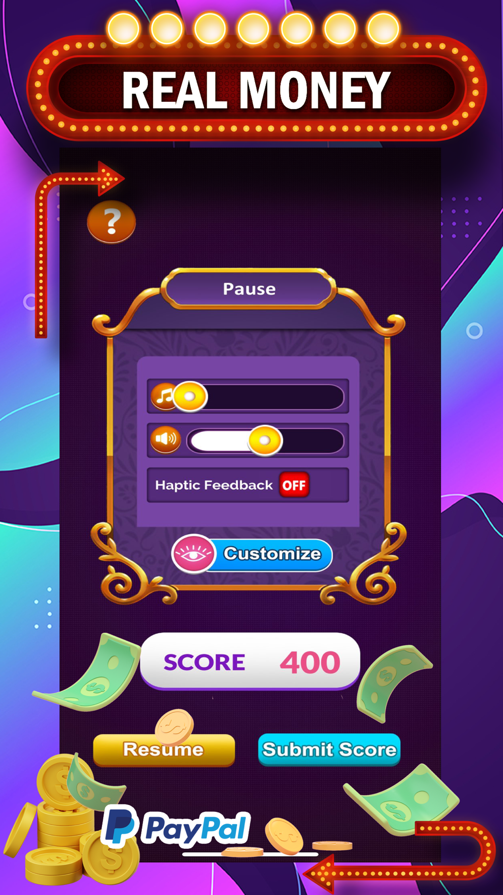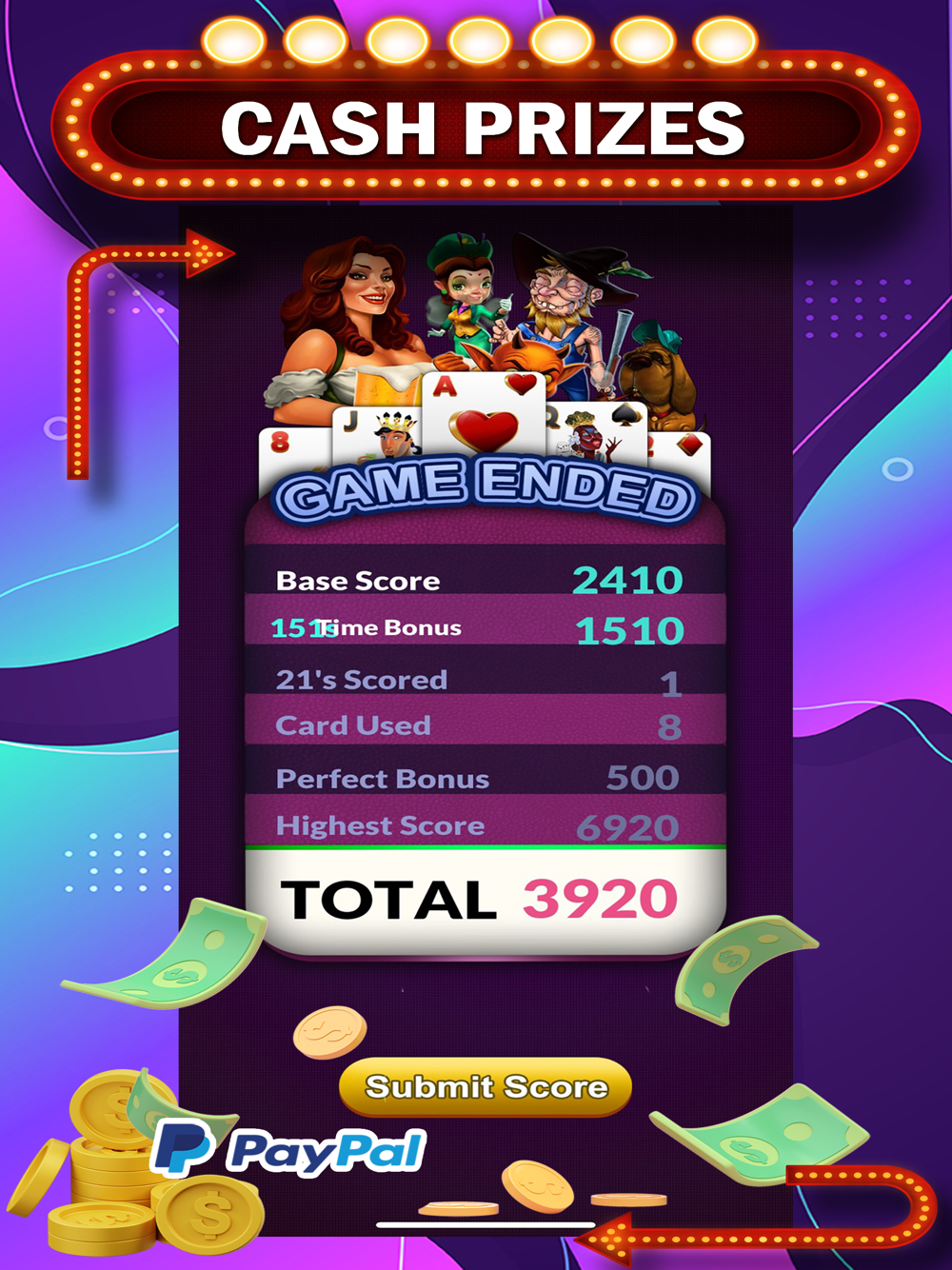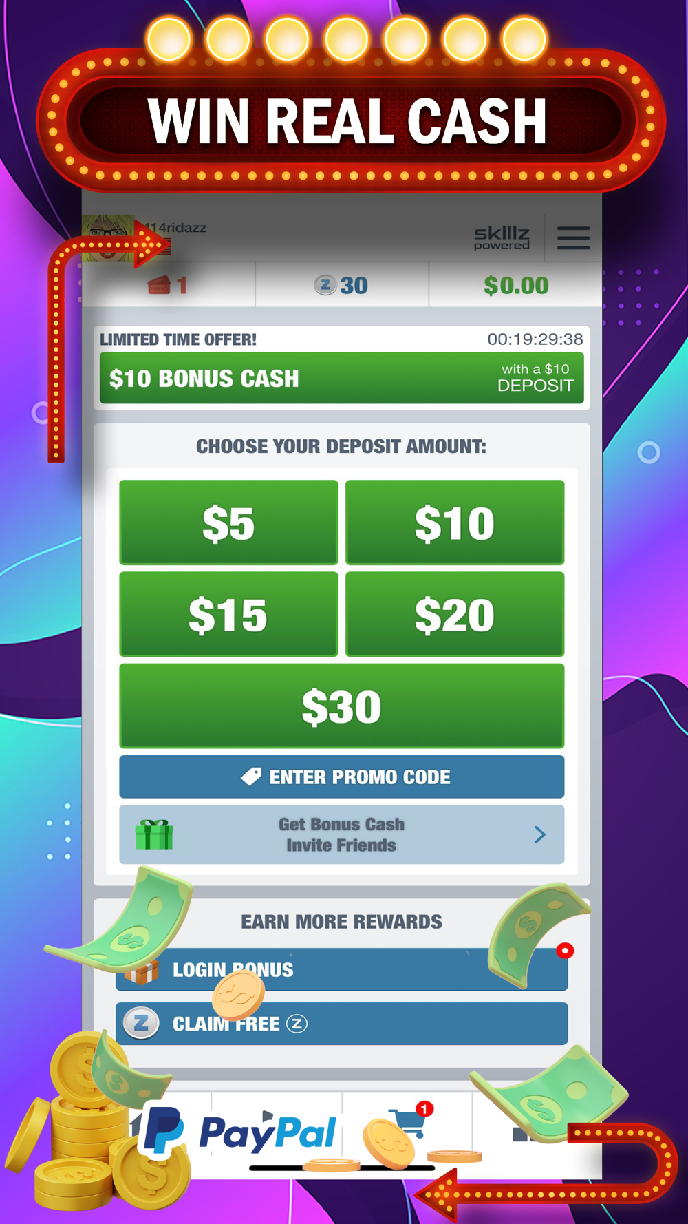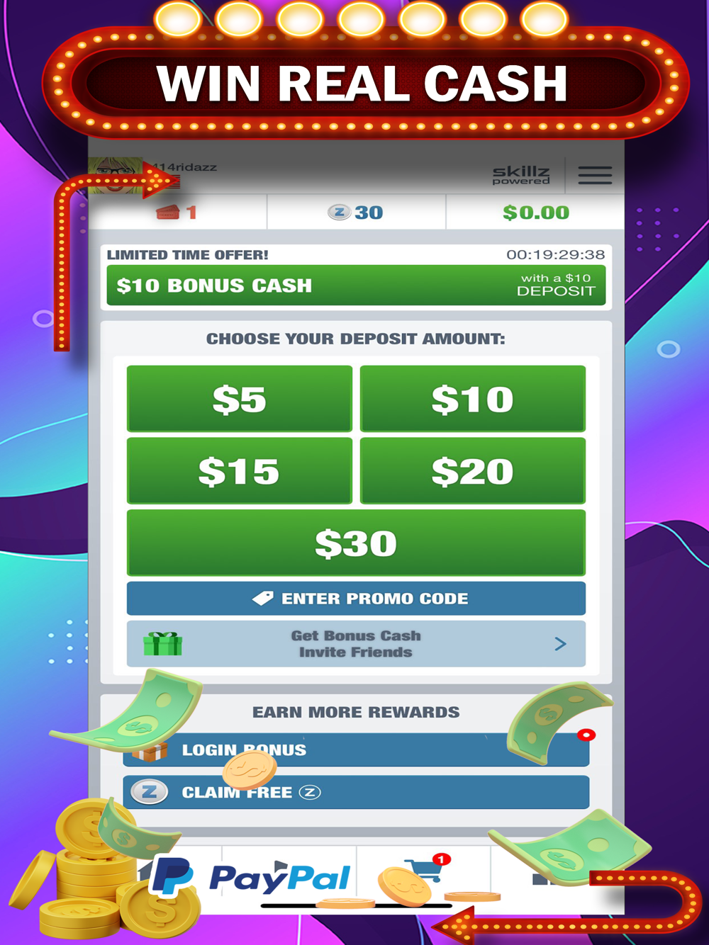 After downloading the game for FREE, you can start playing Practices or Cash Tournaments and win real money.