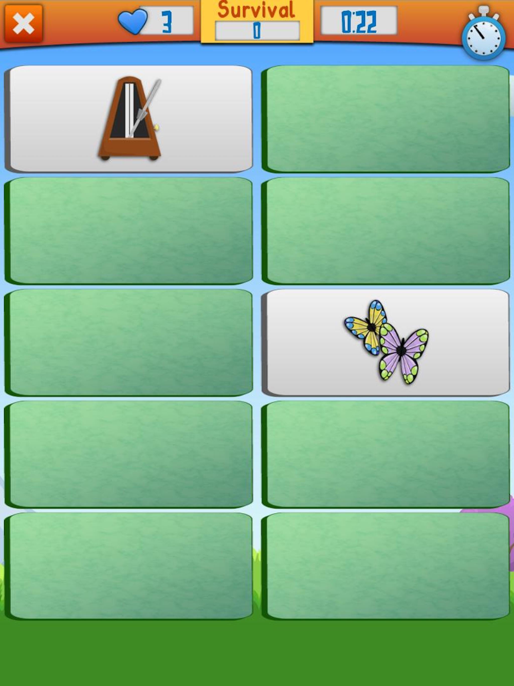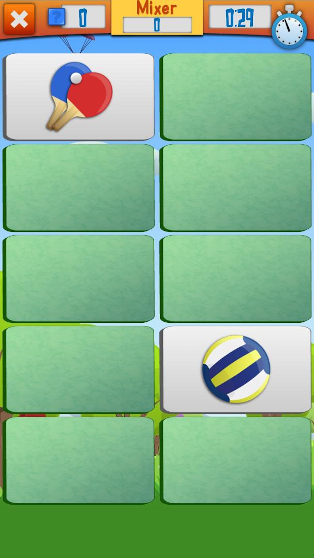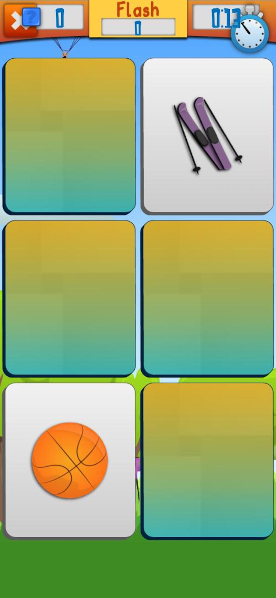 The player must discover two pictures (sports or music or clothes or animals or fruits theme) whether these form a pair disappear, otherwise, are again covered in their original location on the Screen.
