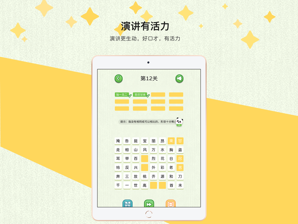 3.由浅入深,通过成语接龙大闯关疯狂猜词由易到难的学习模式,让你轻松体验成语闯关的乐趣成为成语小天才。