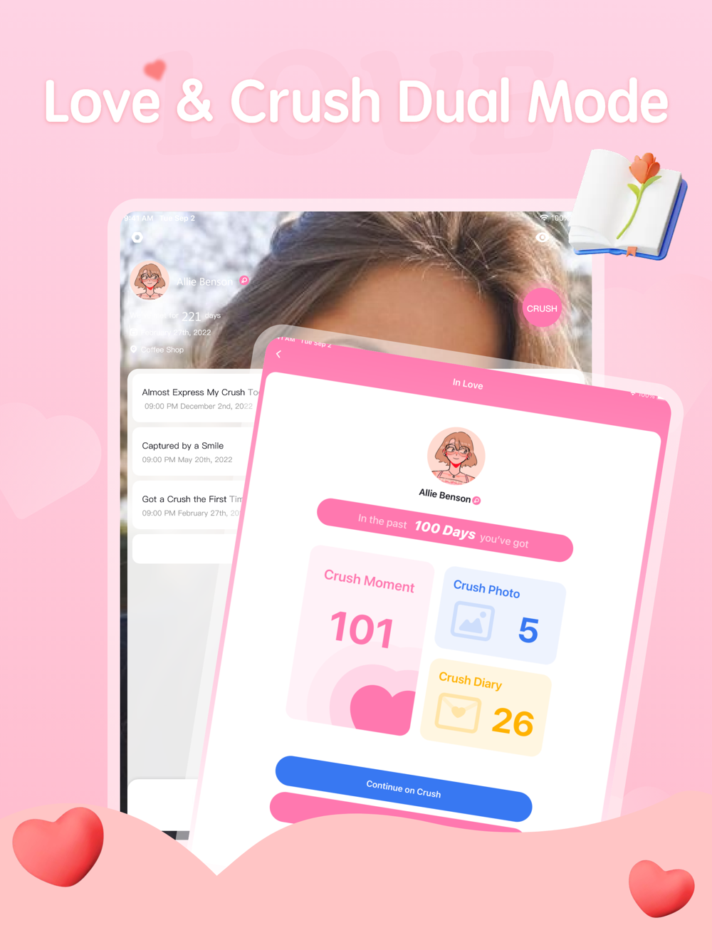 - Create an exclusive Crush record for him/her: the time and place of meeting, the moments that make your heart flutter