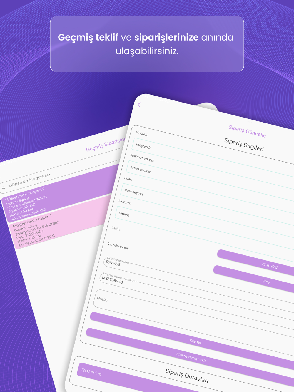 Geçmiş teklif ve siparişlerinize anında ulaşabileceğiniz,