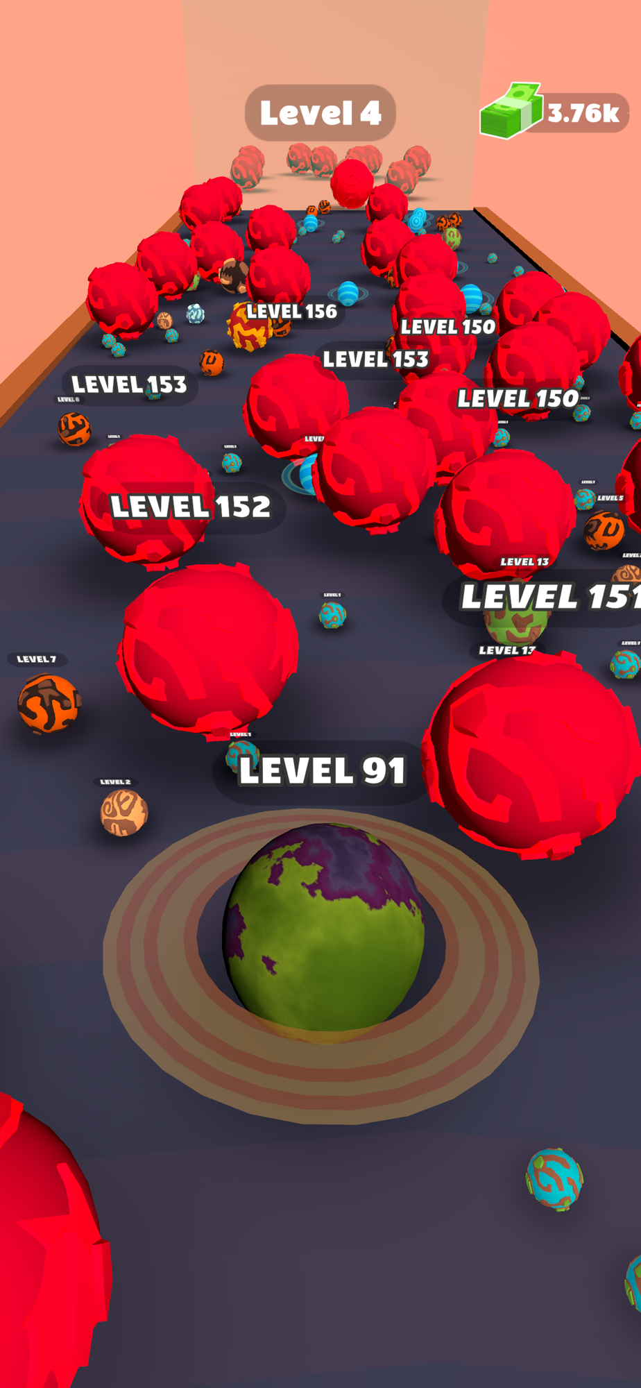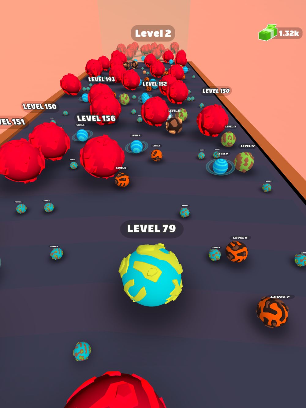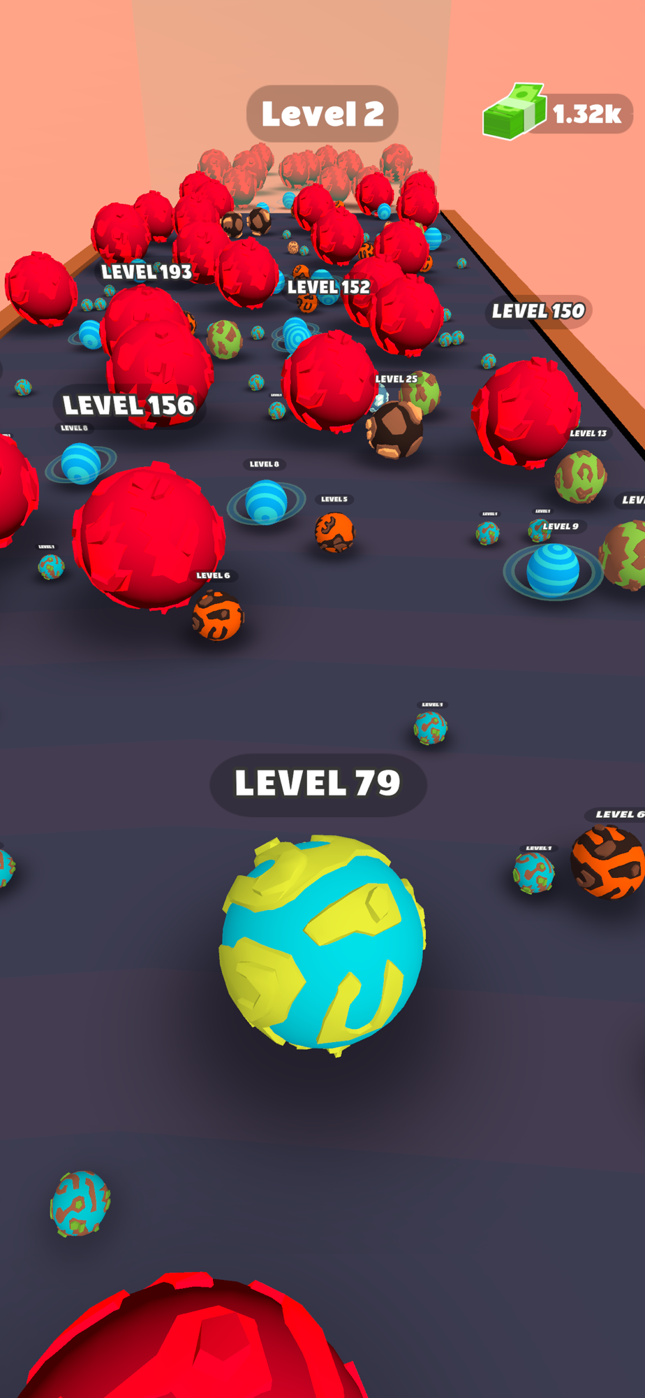 Start with a small planet and upgrade it by merging with others.