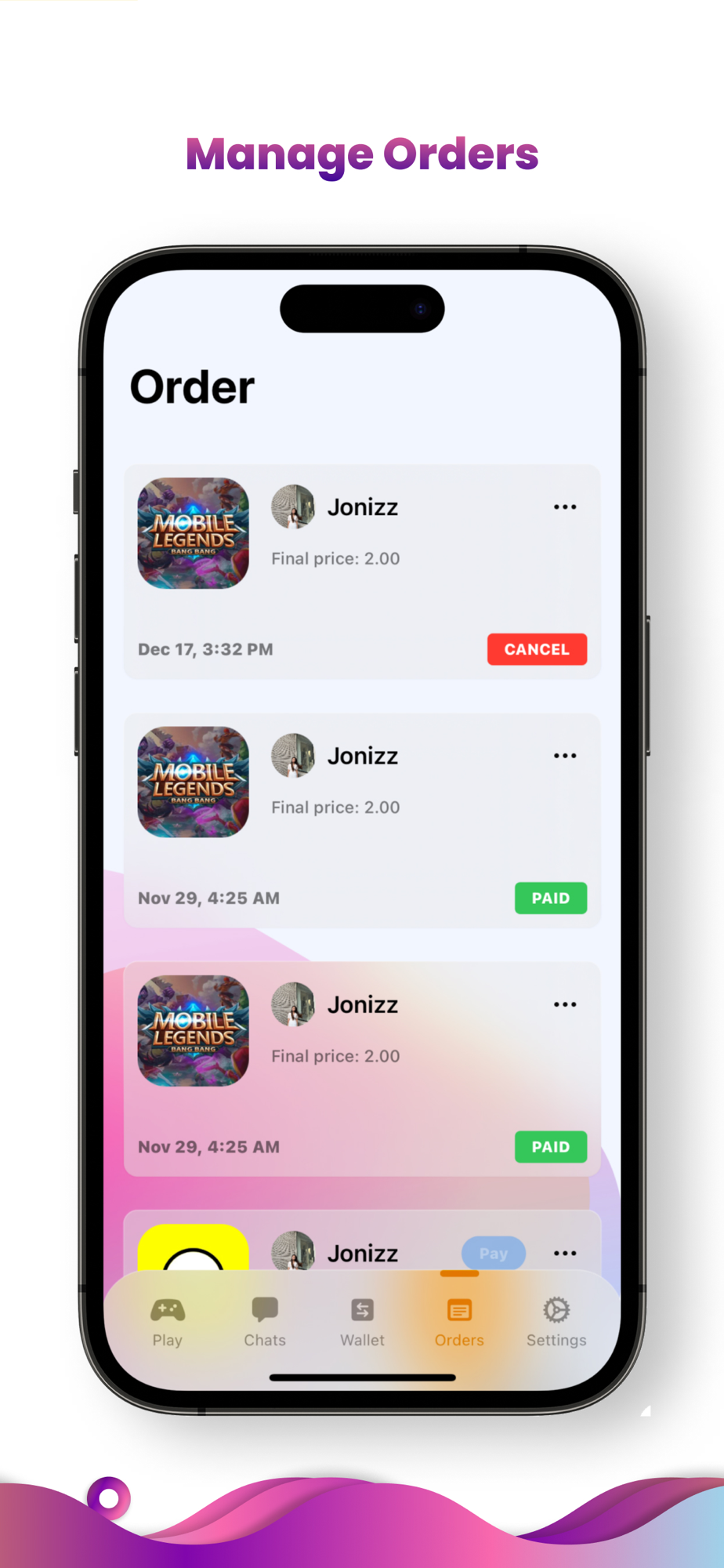 Once you sign up to the app, you are able to hire professional gamers to solve your gaming problems: losing streaks, toxic teammates and bored of playing alone. Our platform support many games so that you can easily find the game service you want!