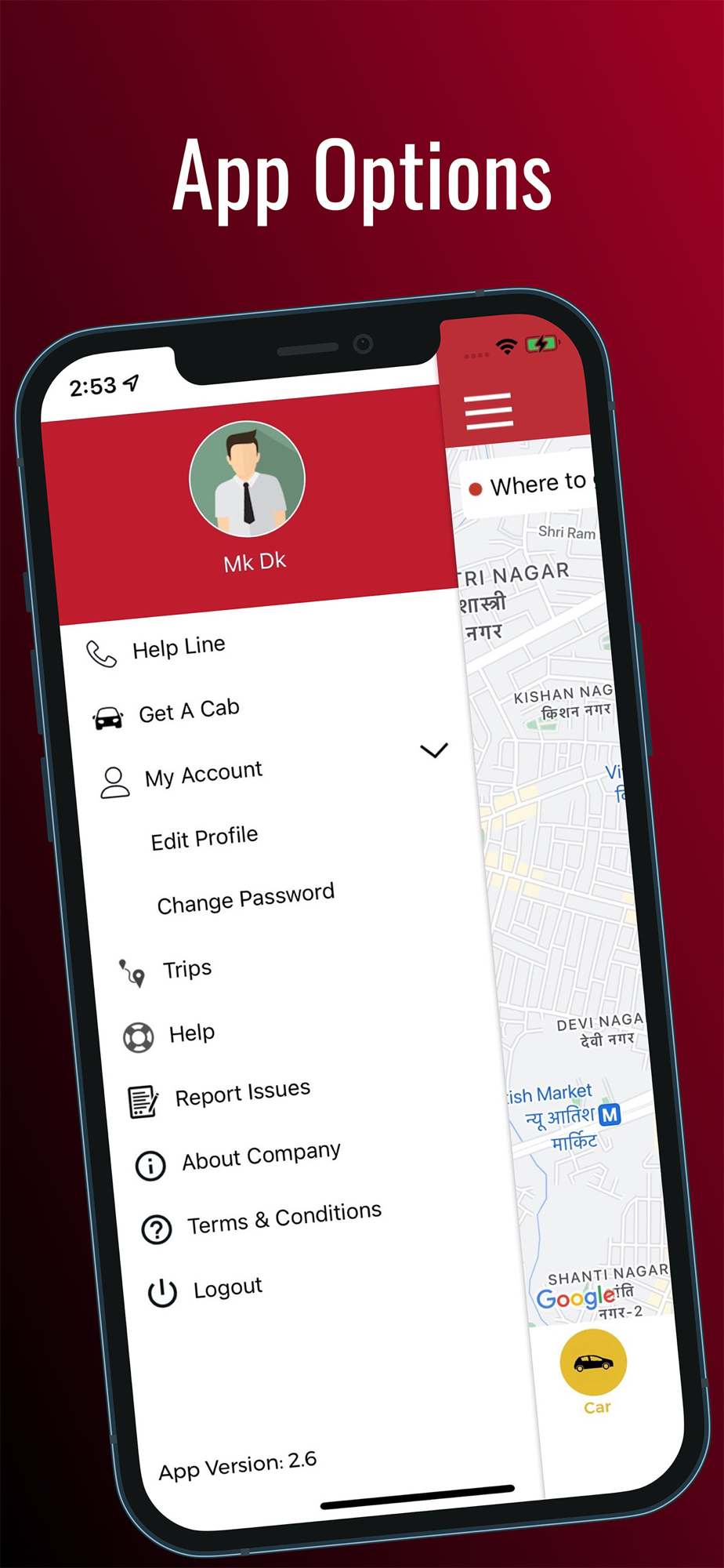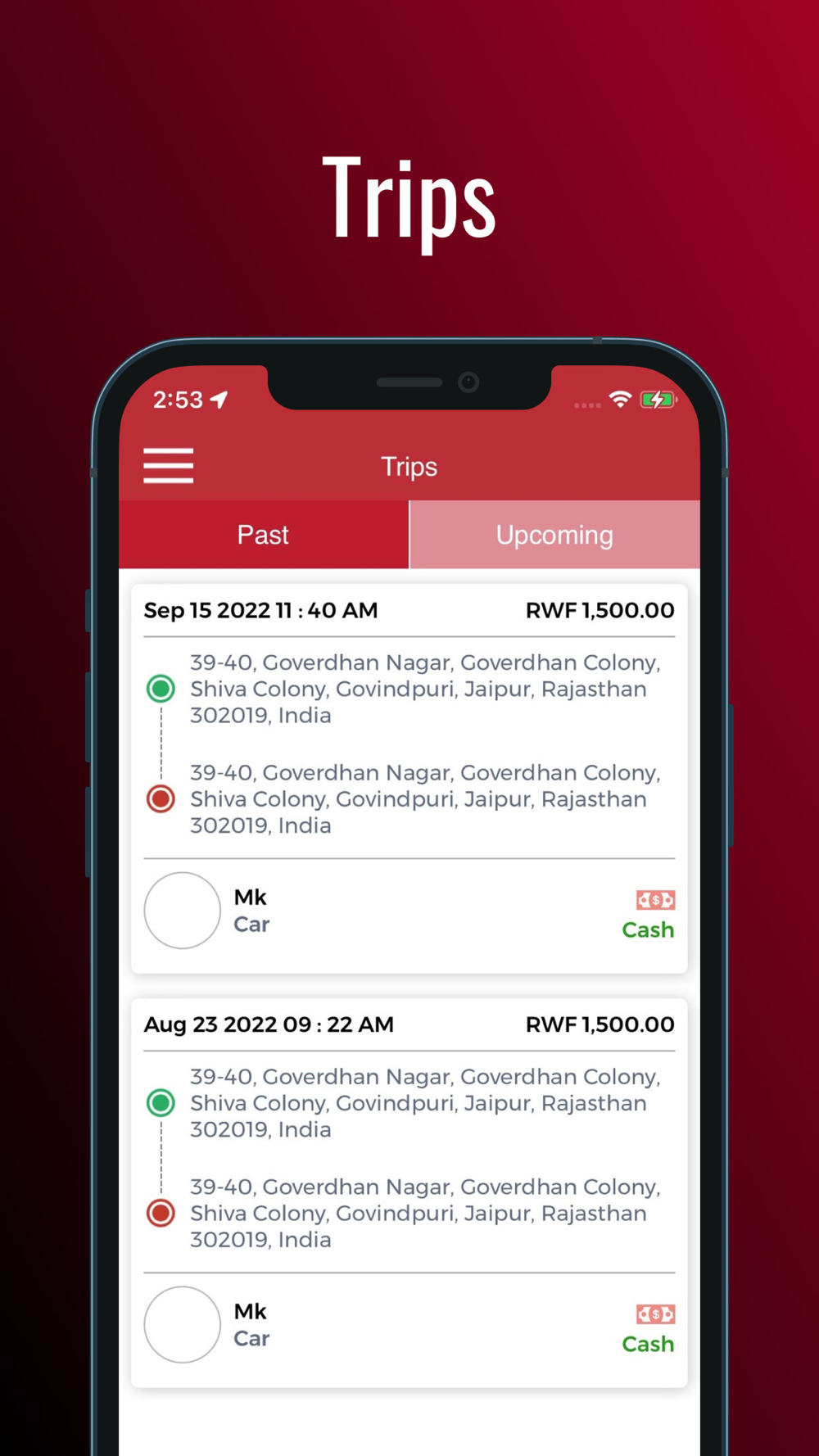 5. Trips- See your past ride details, cancelled trip details & your upcoming trip details.