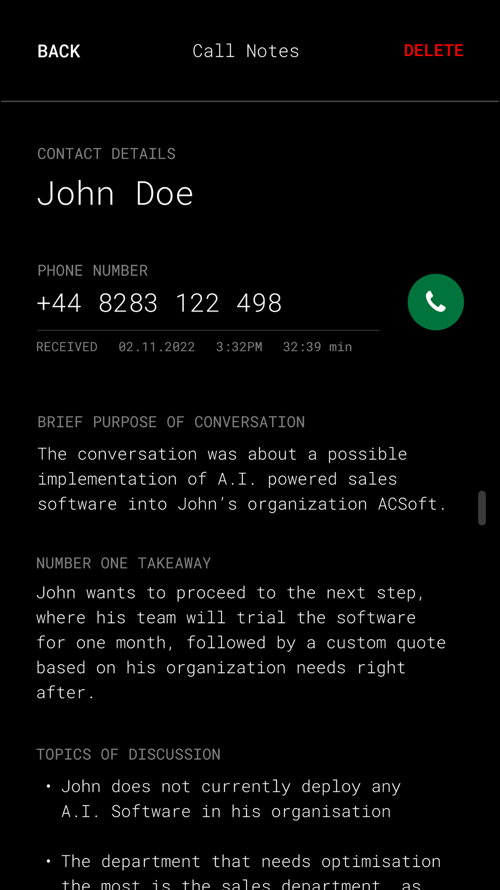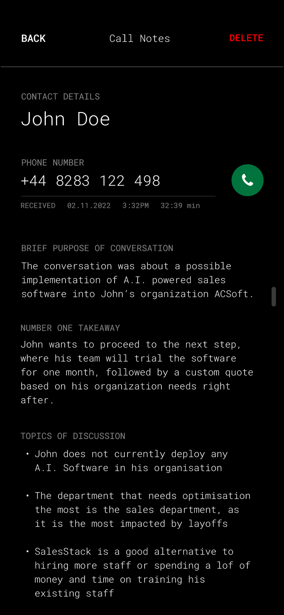 Pro Caller makes a written summary of all your calls in real time, highlights important information and topics discussed for every one of your conversations.