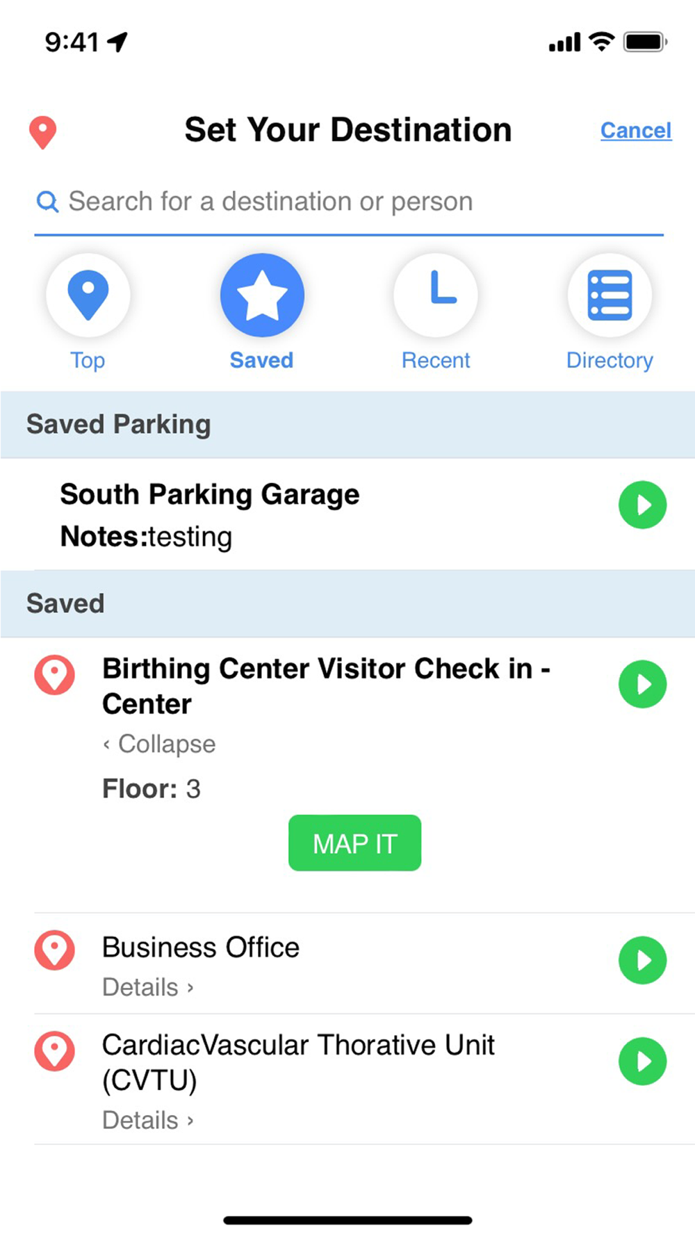 Use the app for driving directions to the hospital, saving your parking location, sharing your location with others and saving your repeat destinations for better wayfinding every time.