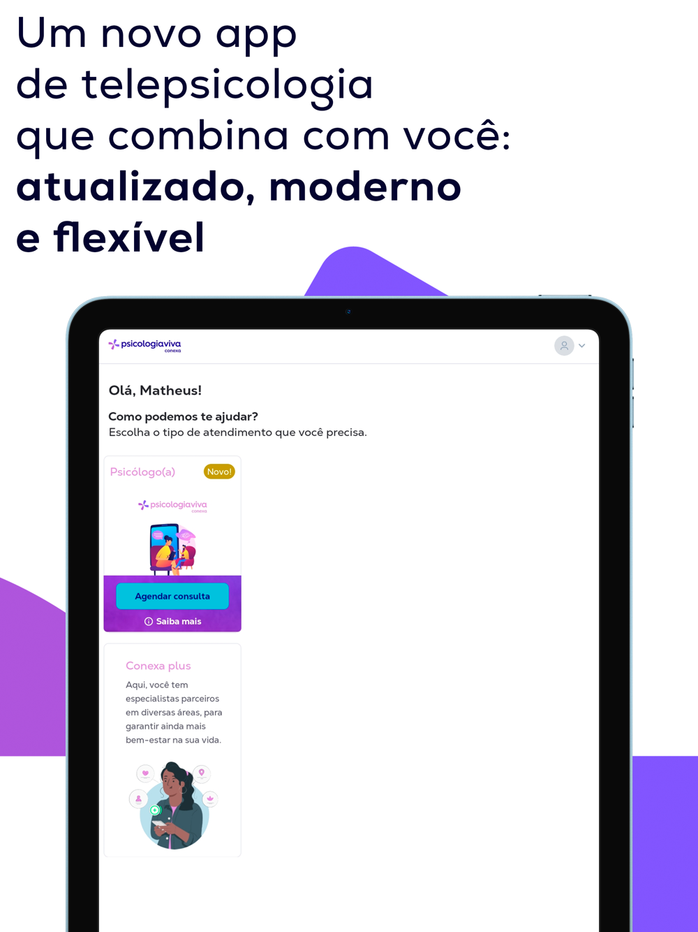 Agora, além da terapia on-line, vamos tornar a sua experiência ainda mais incrível aqui no nosso app, com conteúdos, aprendizados e muito mais para você se sentir uma pessoa completa, do seu jeito.