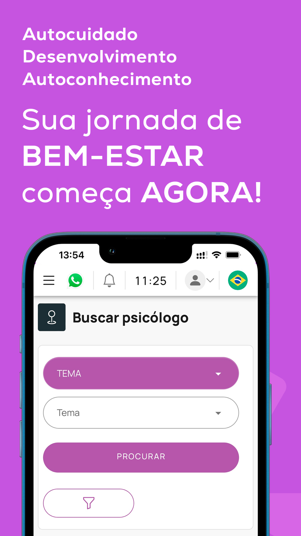 Nossa missão sempre foi transformar vidas. E, por isso, criamos o nosso app, com a essência de desmistificar o conceito de saúde mental e oferecer, de maneira segura, fácil e acessível, bem-estar a todas as pessoas.