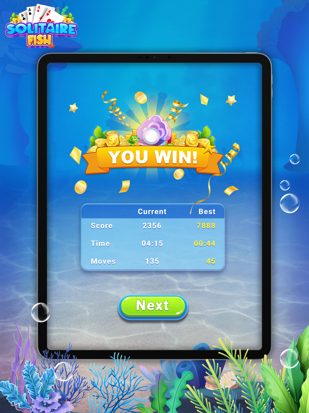 Despite of beautiful aquarium, Solitaire Ocean Treasure is a well designed game to have a smooth and modern feel and still with some classic, Klondike Solitaire game elements we all love. Enjoy Some of The Thrilling Features: