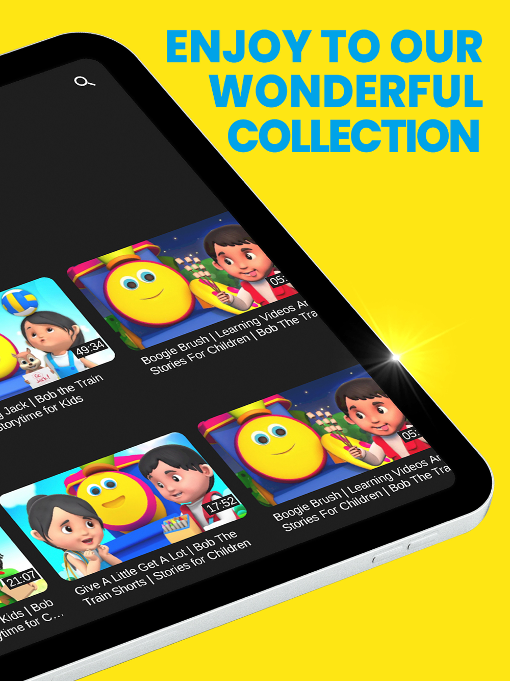 The Kids Channel is also home to Popular Kids Shows like Bob the Train, Junior Squad, Little Eddie, Baby Bao Panda and Bottle Squad.