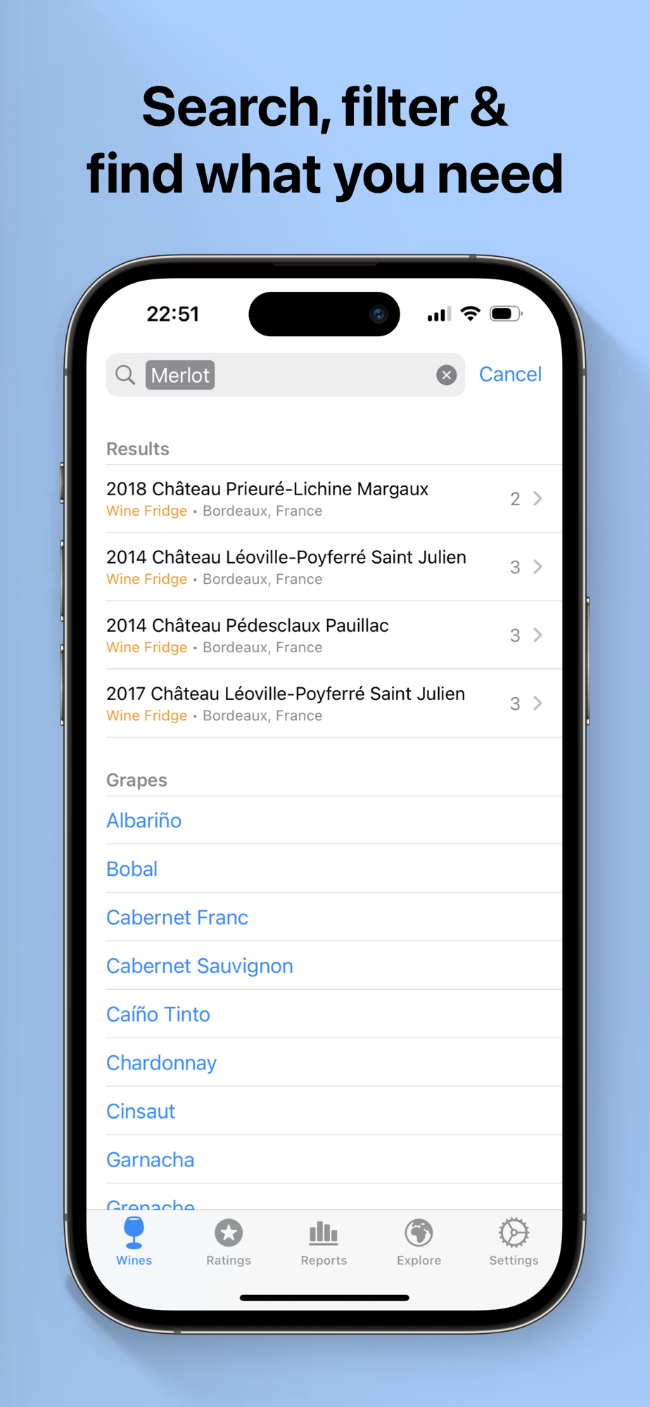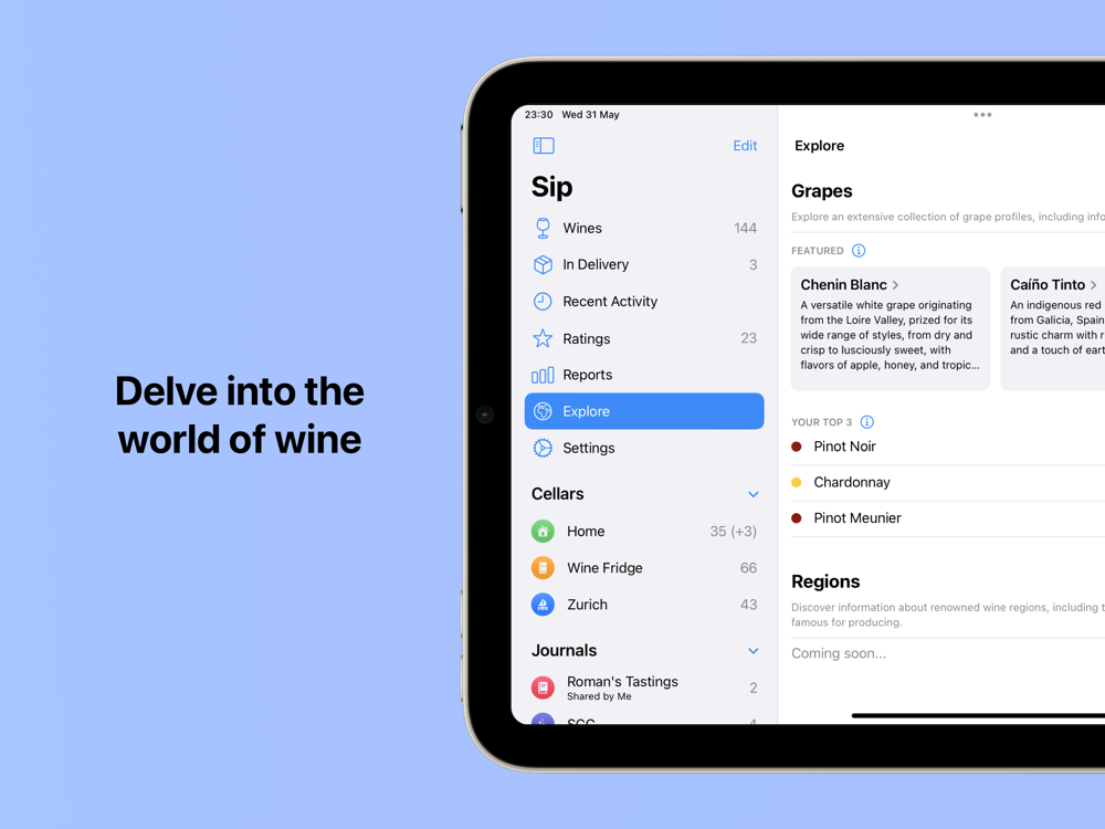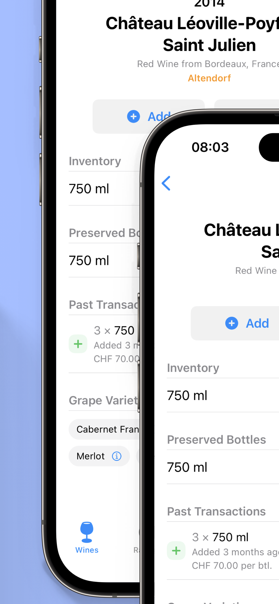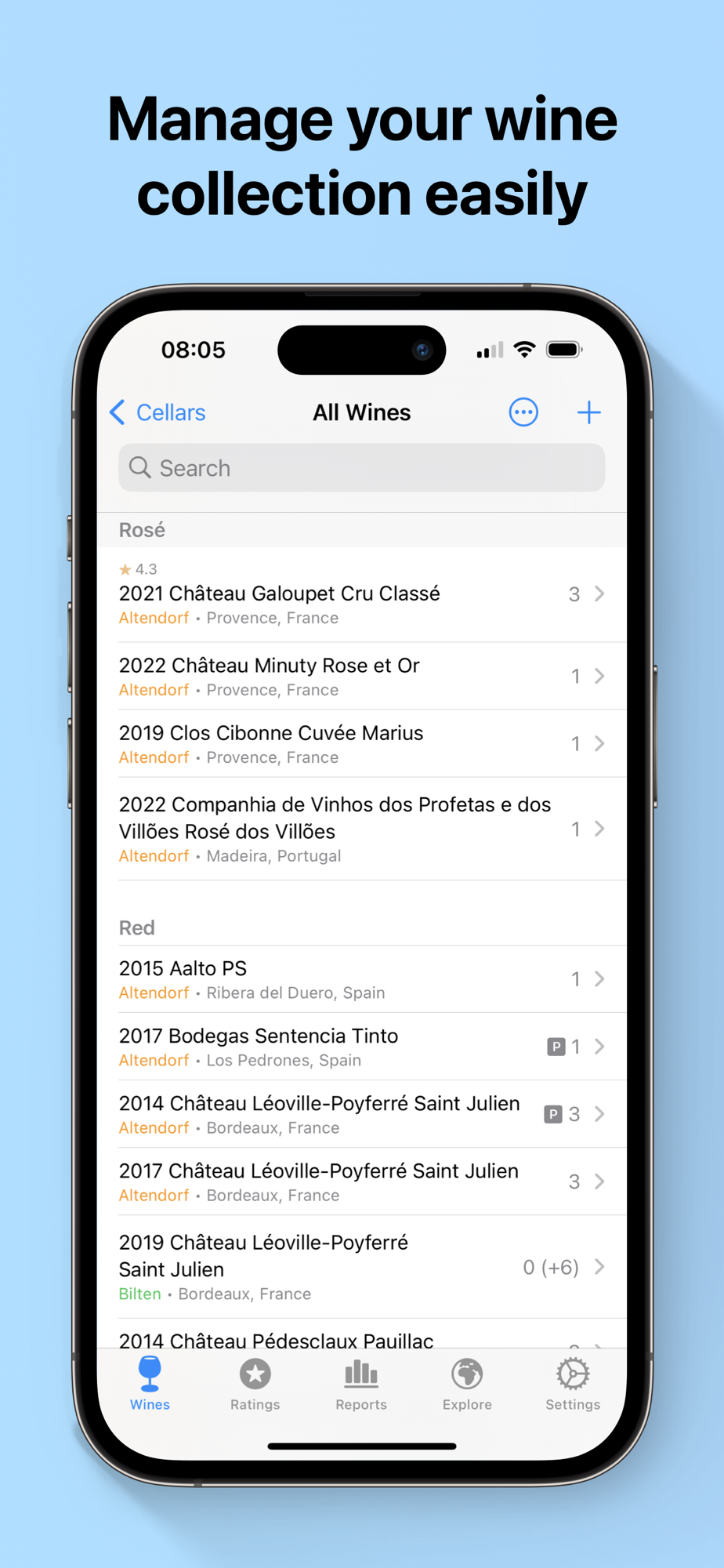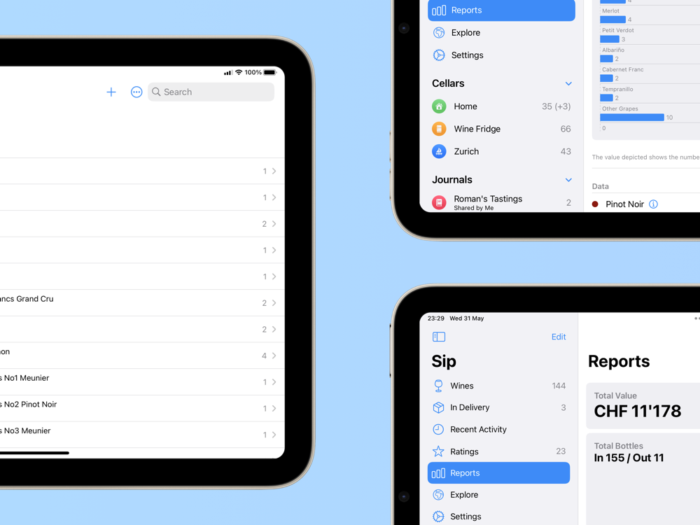 • Generate comprehensive reports about your wine cellar. Now you can gain valuable insights into your wine consumption, grape varieties, wine categories, and more.