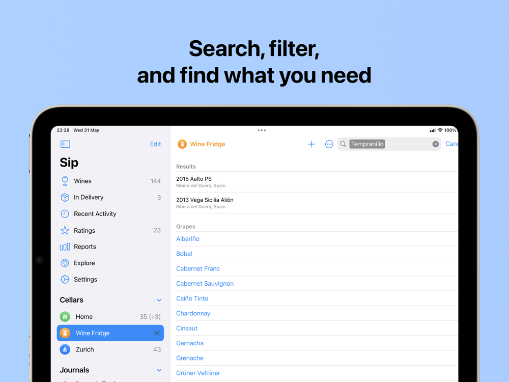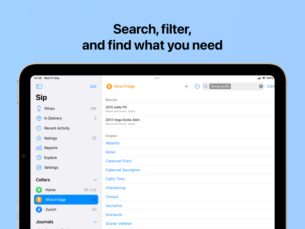 Built with Apple design guidelines in mind, Sip feels right at home on your iPhone or iPad and is the easiest way to digitize your wines.
