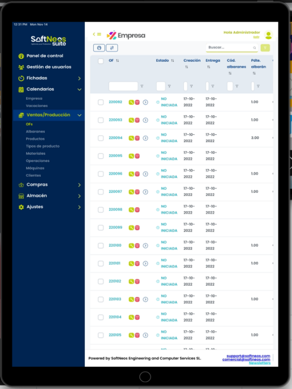 Sistema de control de costes, control horario, fabricación, compras y almacén que se adapta a tu empresa, todo enlazado a tu sistema de facturación actual.