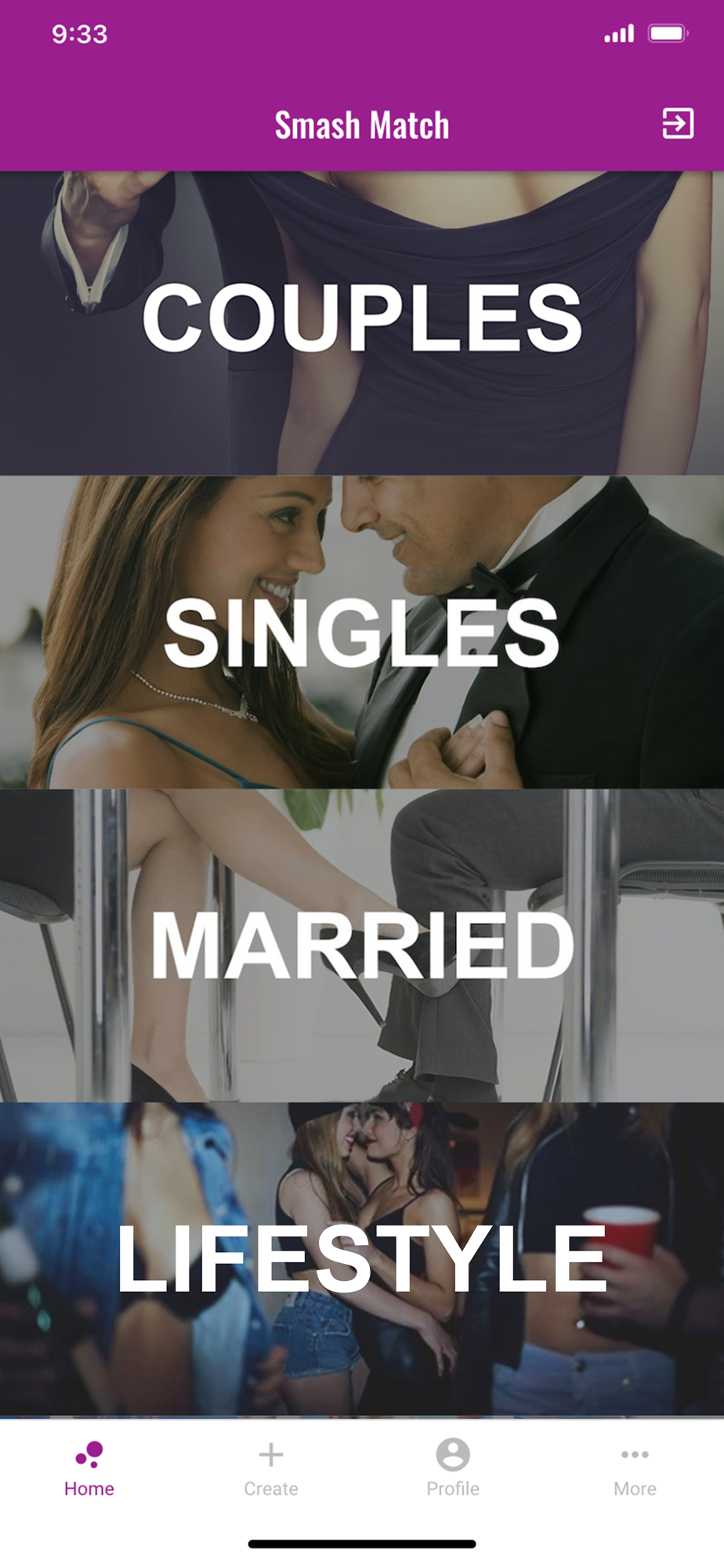 - Categories including couples, groups, singles, LGBTQ+, Lifestyle, and married dating.
