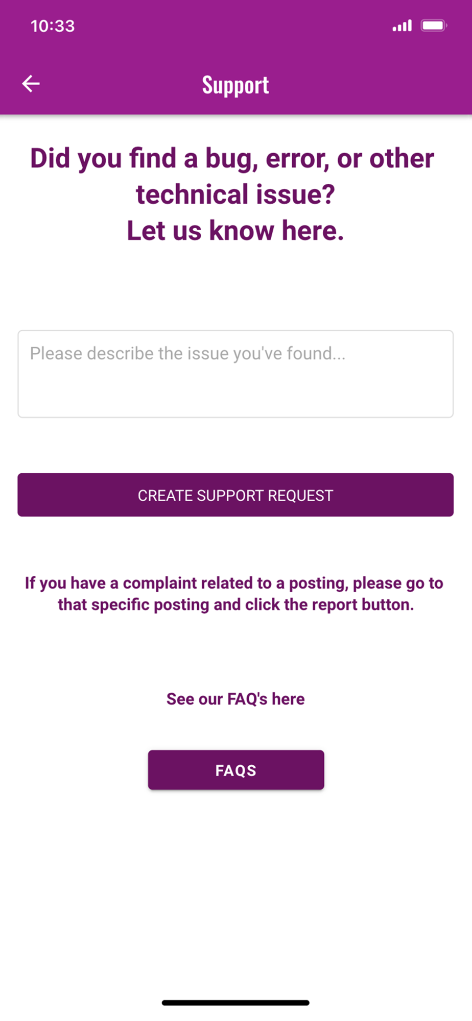 We try to make spam a thing of the past. Just like when you sign up, each user is required to pay a small annual access fee, which allows us to provide you with more quality matches without flooding the app with unverified users. Additionally, most postings also incur a small fee of per post, further reducing the spam factor. However, should we miss a few fakes, there is an easy reporting option and direct support email feature so you can let us know about violations.