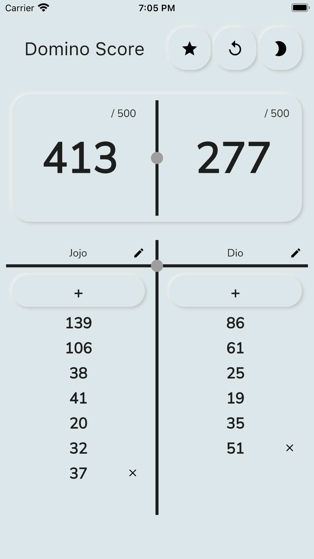 "Domino Score Tracker" is an app where you will be able to write down the scores of your domino games. It allows you to pick the score limit for the match and it also saves half played games so games that get interrupted for whatever reason don't get lost.