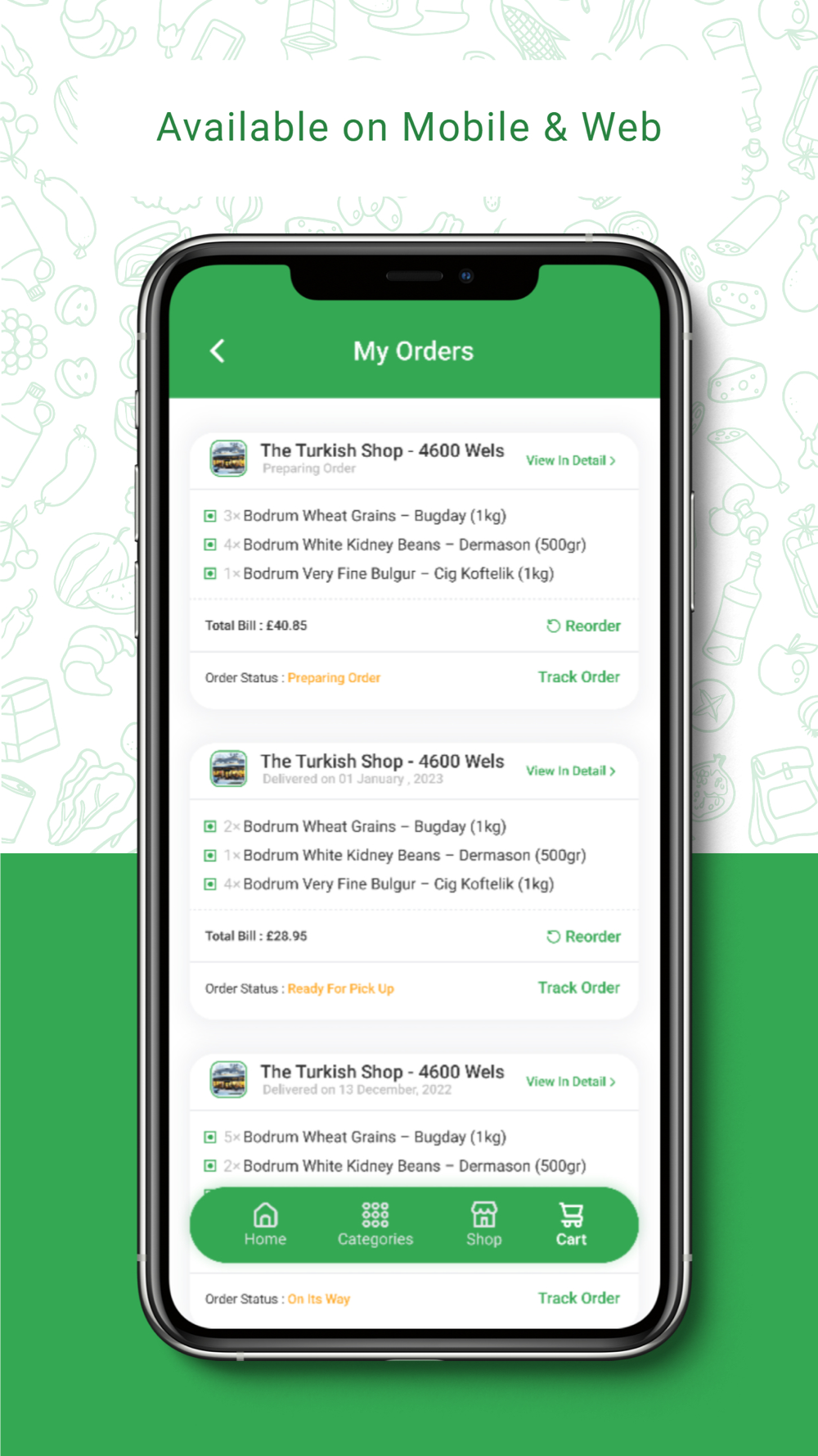 Einfach Standort auswählen, Lieblingsessen oder Supermarktprodukte aussuchen und bequem und schnell per