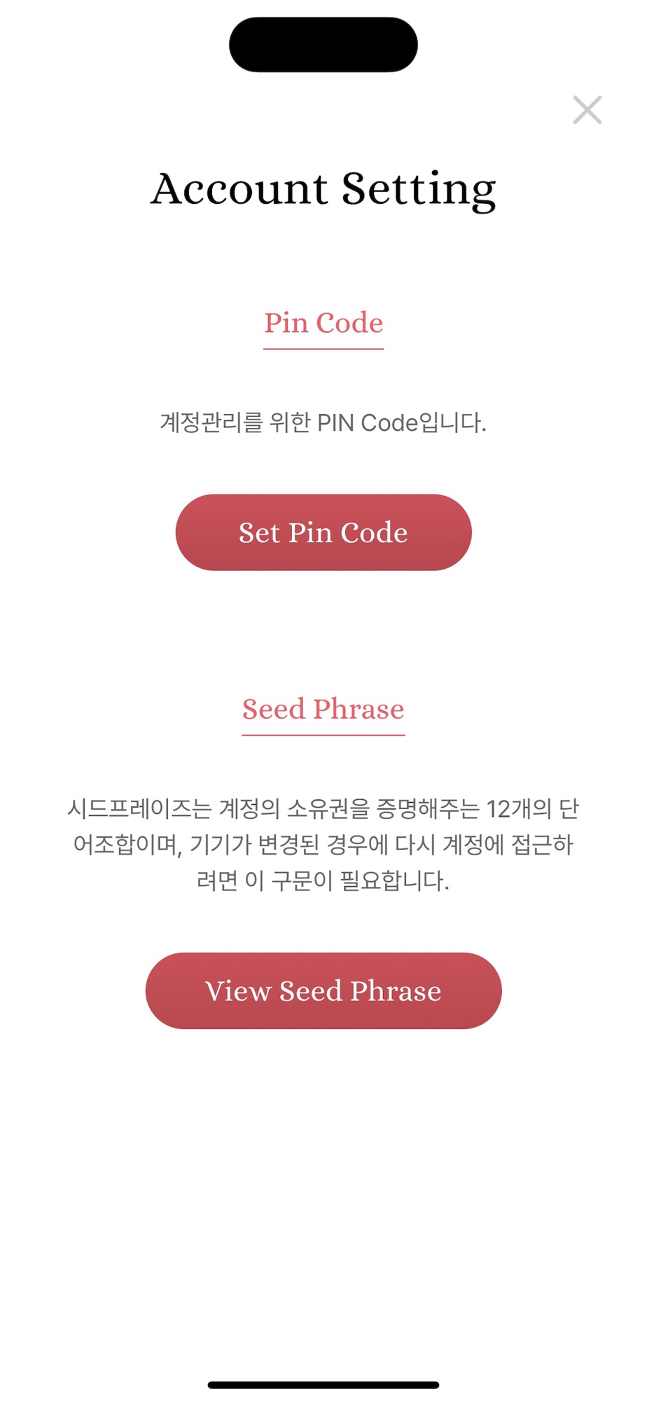 - 모든 정보는 폰에만 기록되며, 원하면 Seed Phrase를 통해 다른 폰으로 옮기거나 백업 할 수 있습니다.