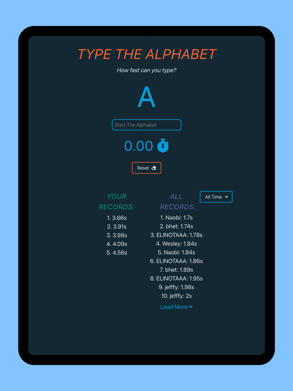 Test your typing skills and compete with your friends and family with Alphabet Typer.