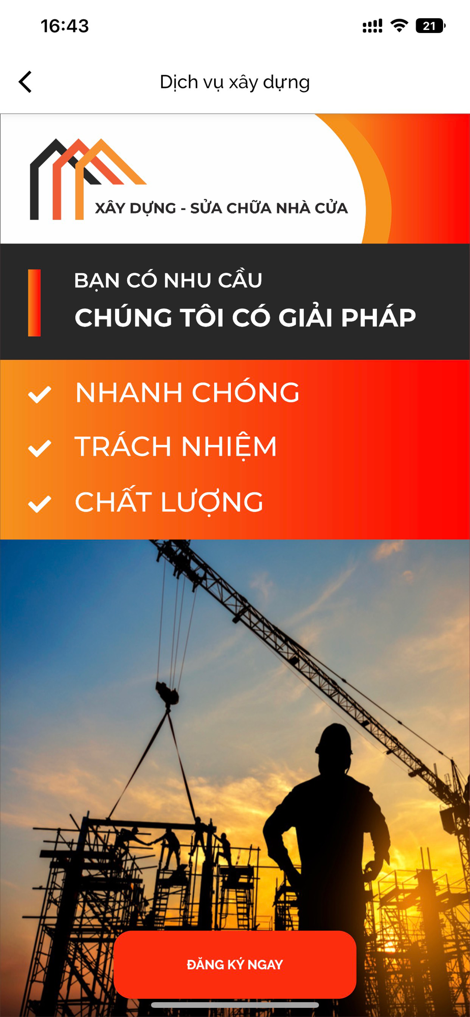 Chào mừng bạn đến với Ứng dụng đăng tin bất động sản & đăng ký dịch vụ thiết yếu như xây dựng, sửa chữa nhà.
