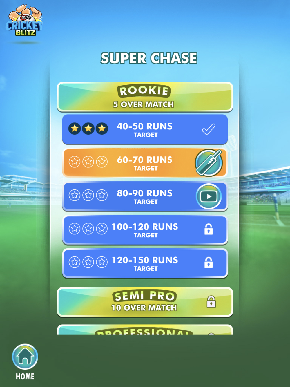 Super Over: You have just one over to complete a nerve wrecking batting challenge! Every win takes you one step closer to the final!! Now get sloggers and your power-hitters geared up!