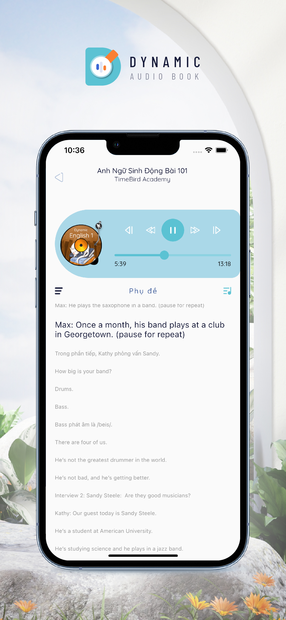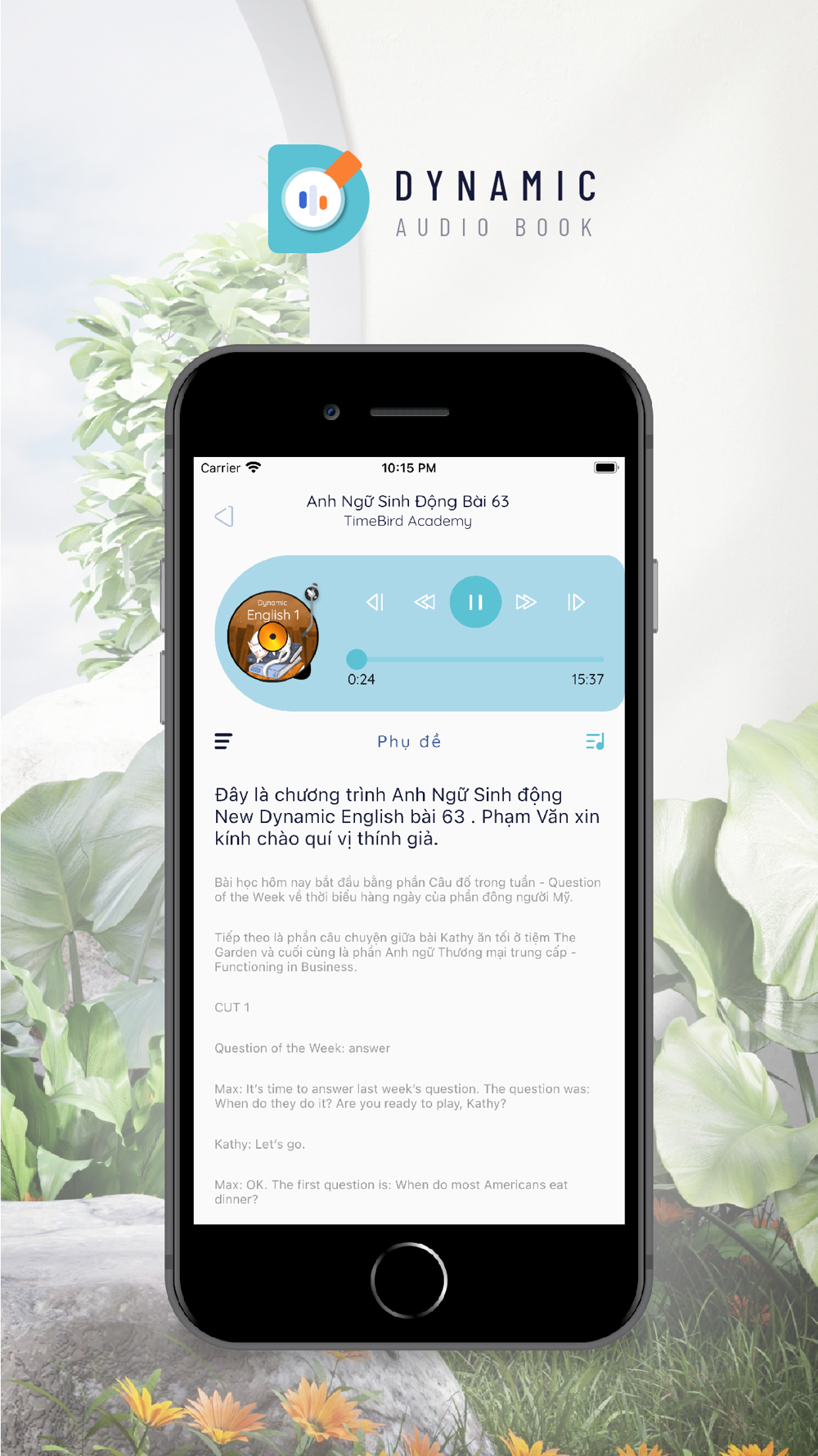 Dynamic English is an application to learn English through audio books. Synthesized from the best lectures through stories based on American living culture and life tips in an American cultural environment
