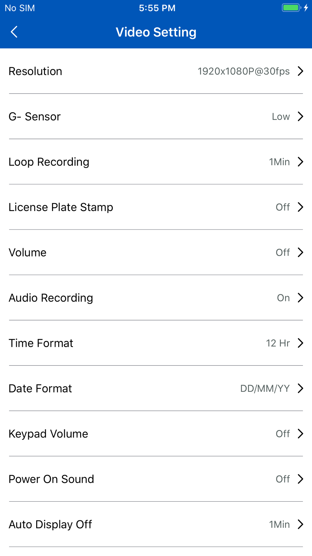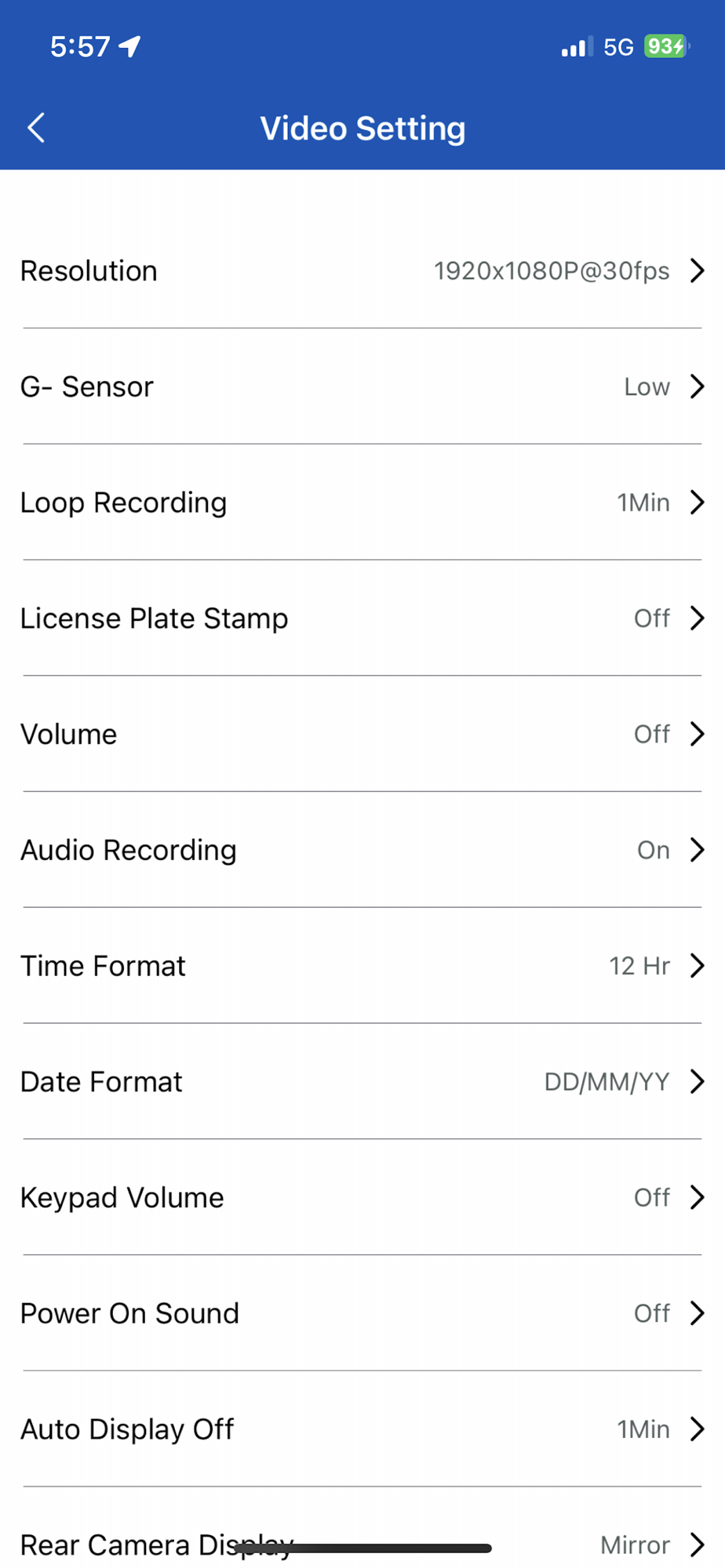 Access your dashcam with a direct connection over WI-FI. To do so, connect first to your dashcam using your phone's WIFI network Menu. The WIFI name will be DTF_942D-xxxxxxxx.
