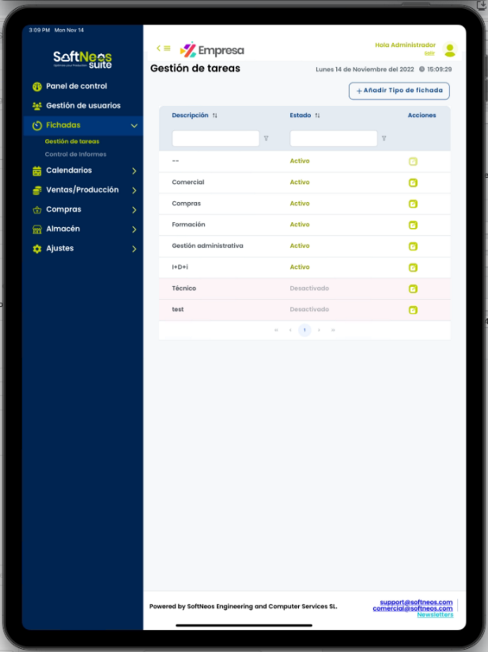 Controla a tiempo real la dedicación de los trabajadores a los distintos proyectos o tareas.