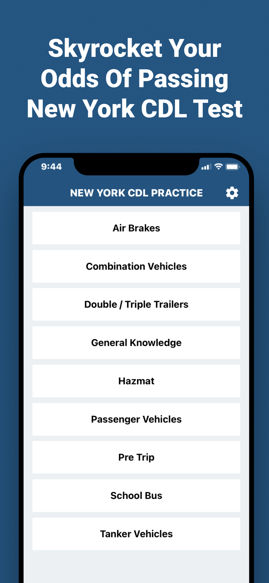 CDL New York Practice app contains everything you need to skyrocket your chances of passing the Commercial Driver's License test in NY.