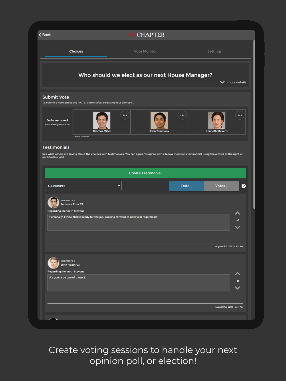 - Digital voting for chapter elections, recruiting and internal opinion polls