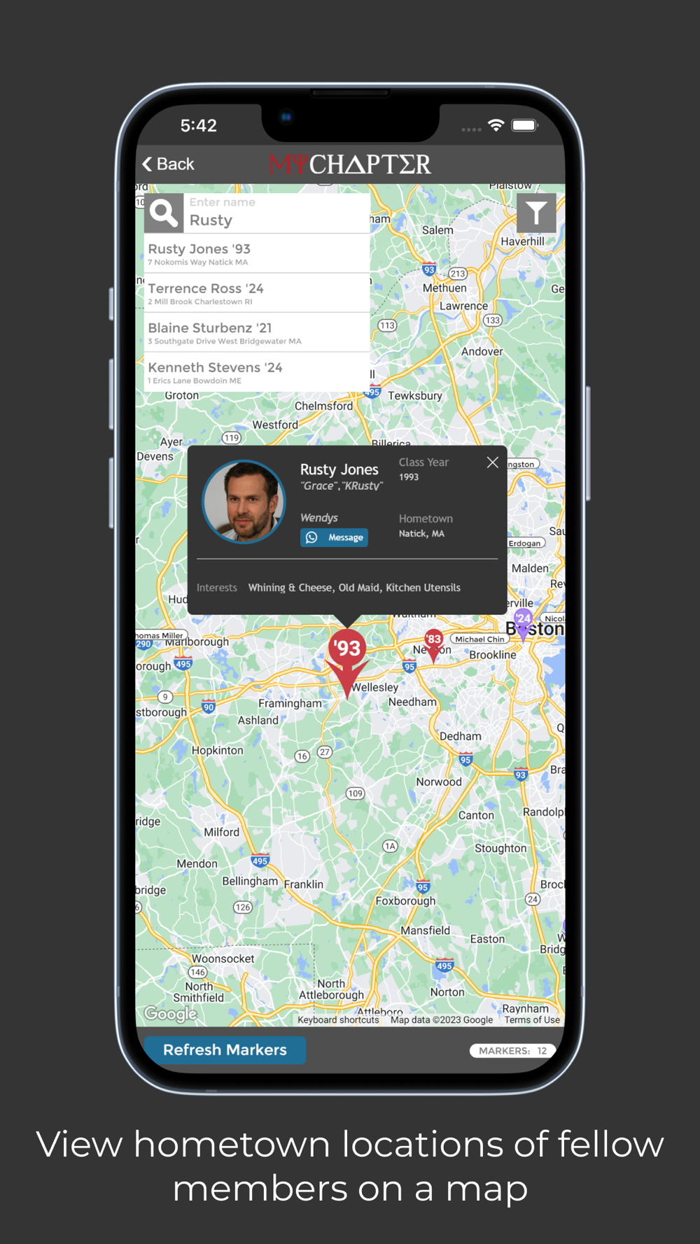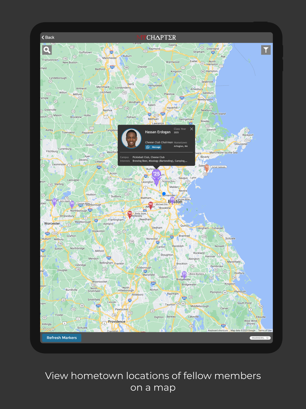 - Members can be filtered on class year, home state, alumni/undergrad...