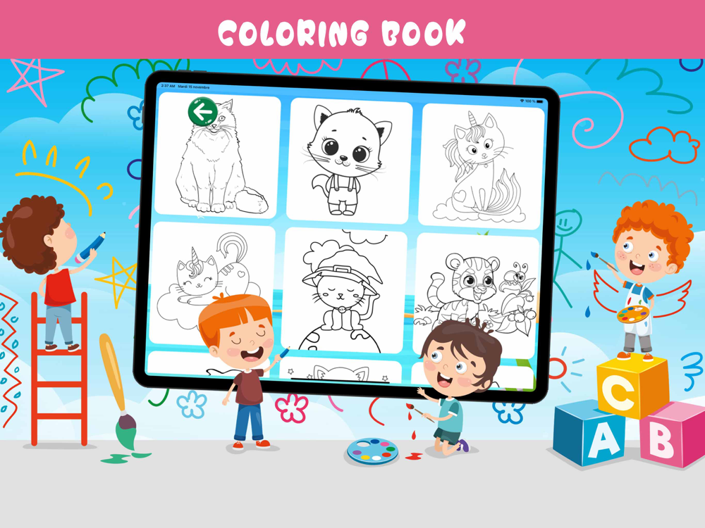 Coloring book was built specifically for anyone. It has an easy to understand interface . You'll have fun using the drawing, painting, and learning games at your disposal, it may help you to learn drawing too .