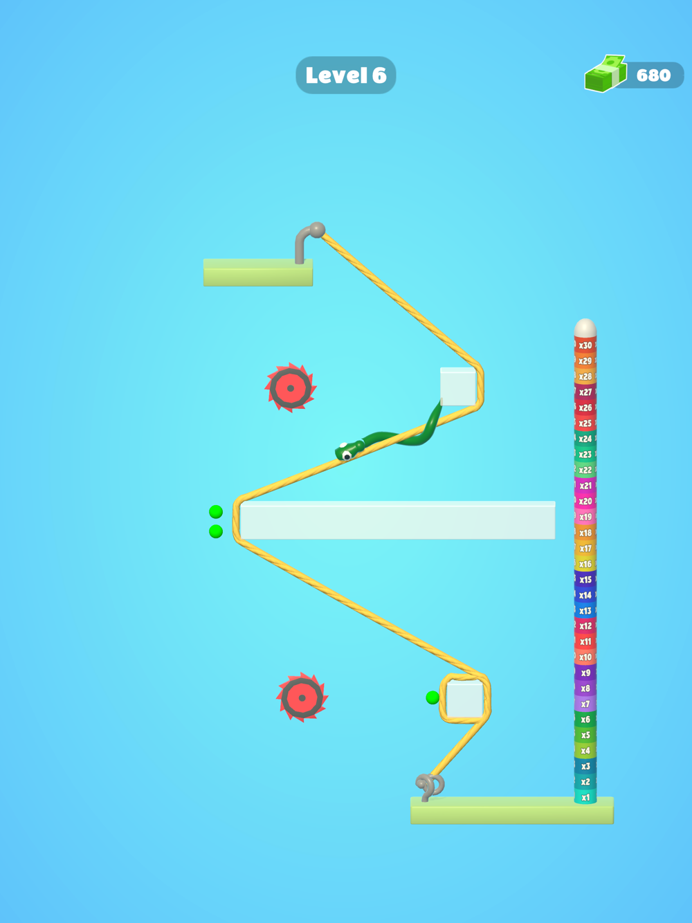 Help the snake overcome all obstacles and get to a safe place.