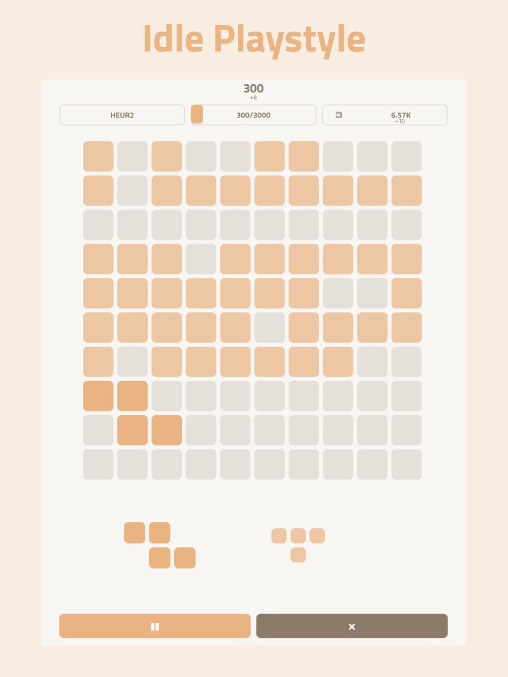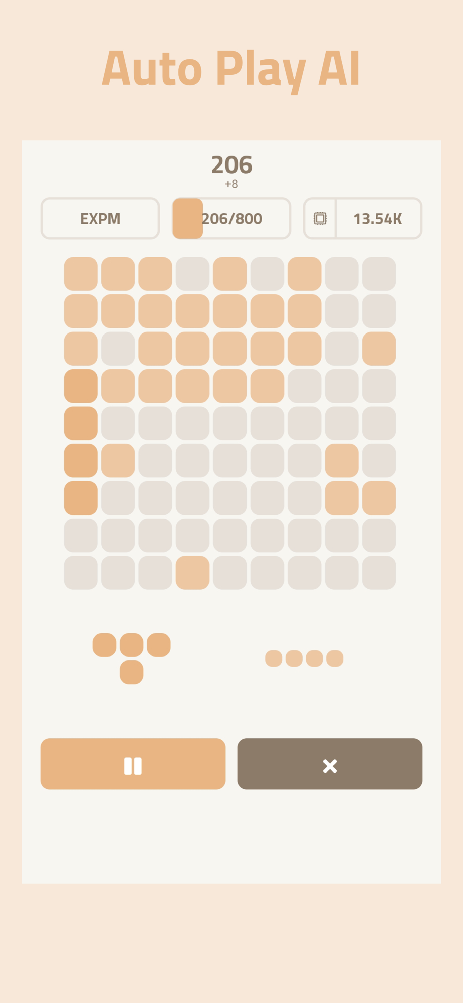 Many hand-crafted algorithms are available. Play with simple heuristic algorithms to get started. Unlock smart AI, advanced heuristics and deep learning ai machine learning, which are very powerful in solving the block puzzle.