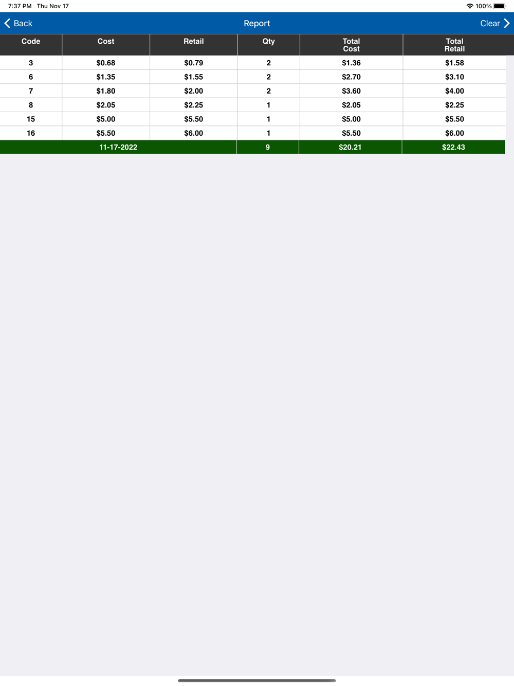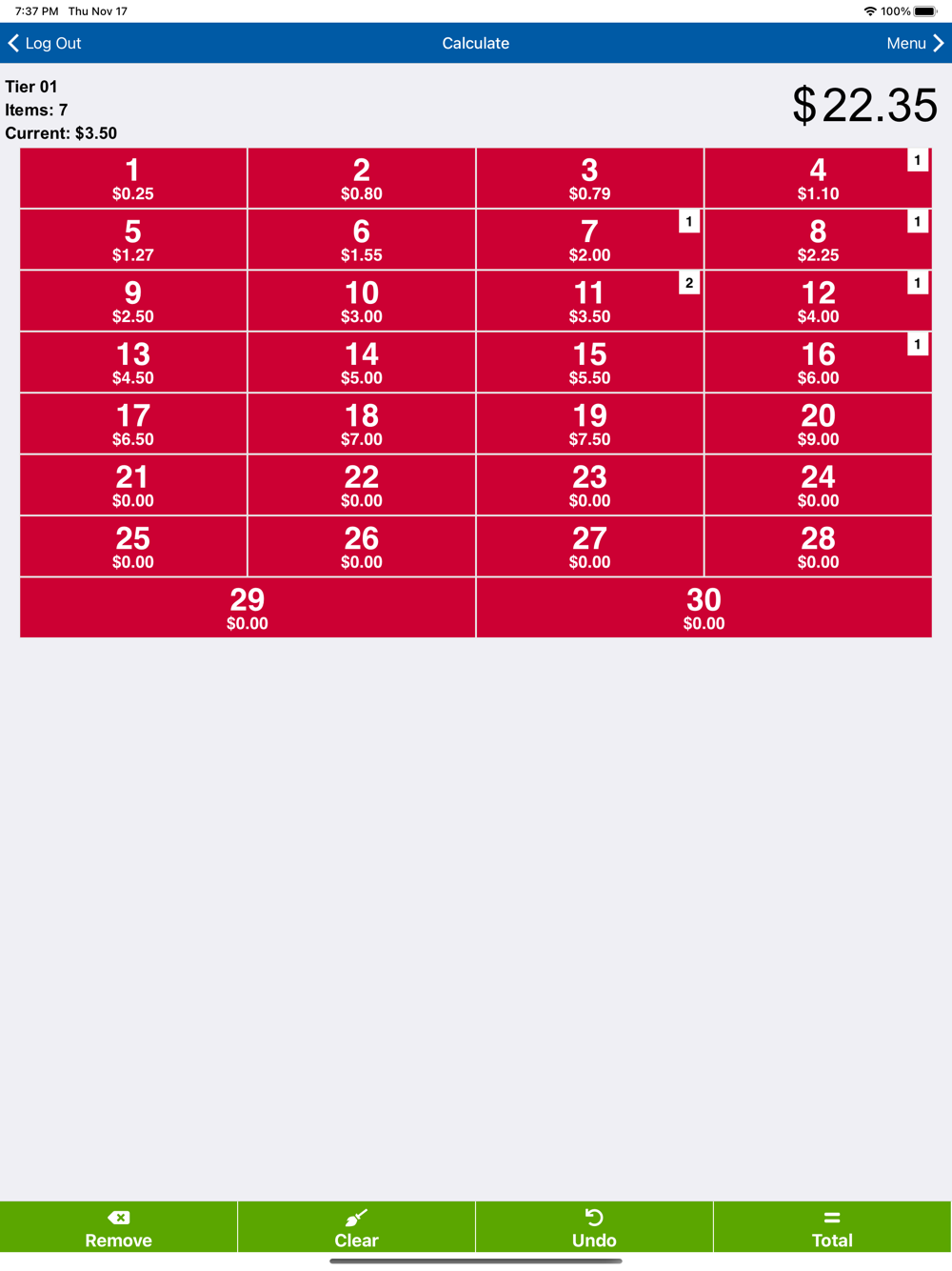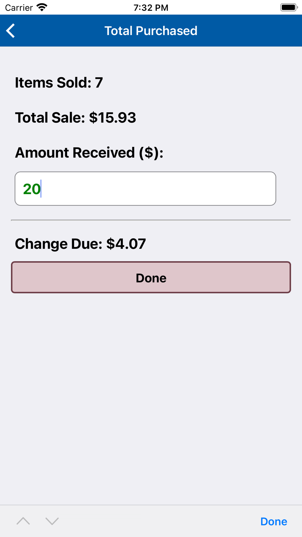 An application that replicates the actions of a typical cash register. This allows customers to purchase items while having the cashier calculate the total quantity in dollars and units as well as amount tendered and amount of change due.