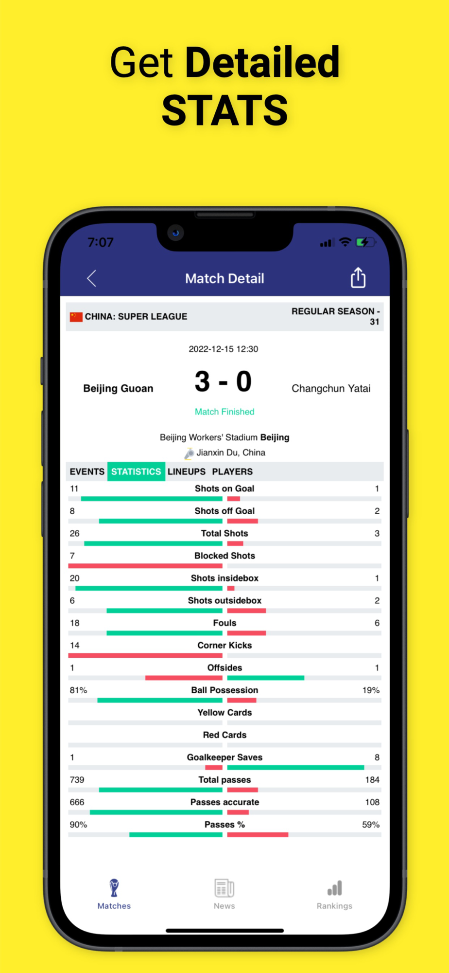 - Check out live matches score, match stats, lineups and all that you want to know!