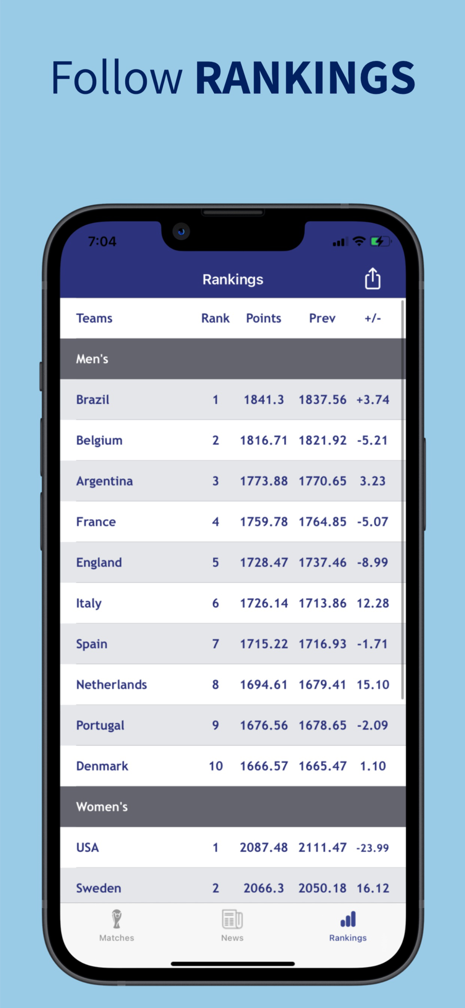 Dig in the magic of Football and stay updated with schedule, squad, news, scores, live score updates, match stats, teams, players, points table, rankings all in one place! You can also set reminders and we will remind you of your favourite matches.