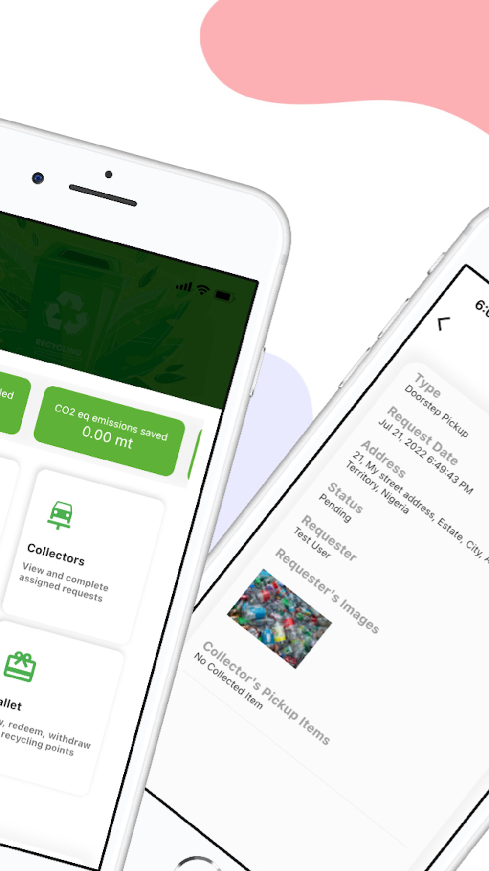 From the comfort of your homes, you can request pick up for your recyclable wastes like plastics, paper, cartons, nylons, metals etc and a designated last-mile collector will come to you on schedule days to collect, weigh and record the value of your wastes