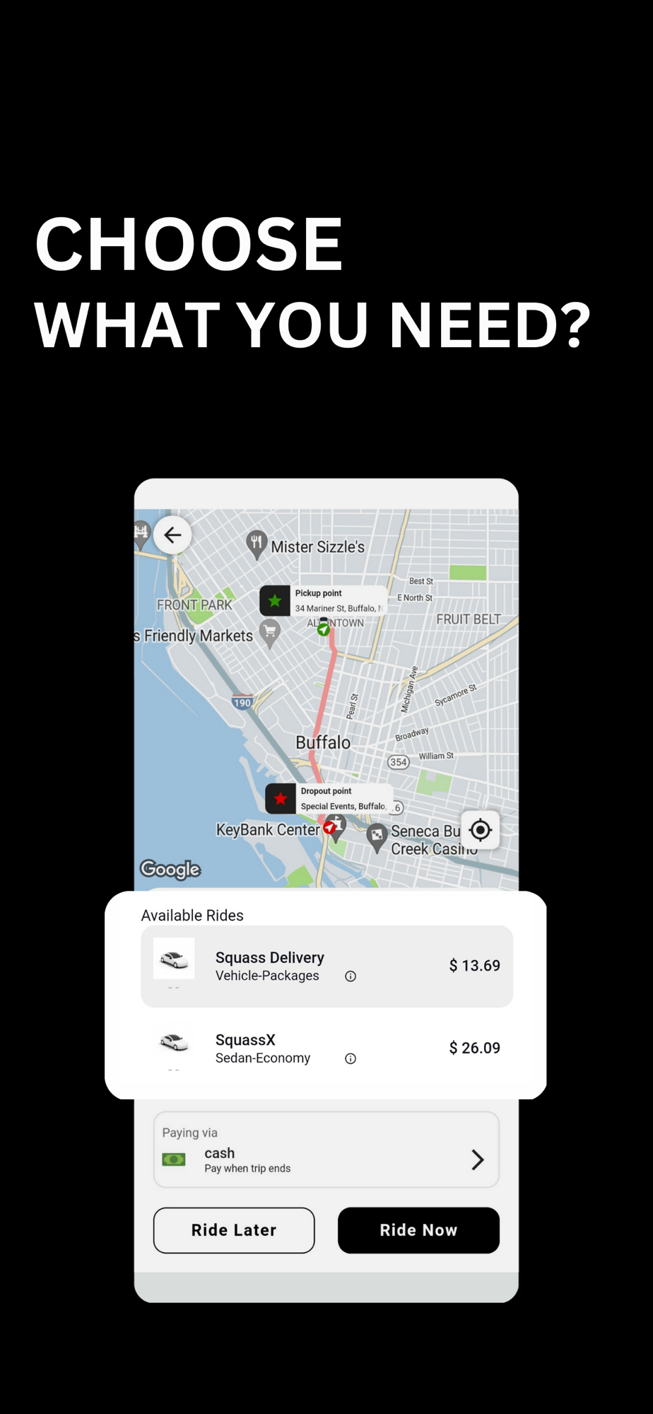 Squass has a friendly and easy-to-use online platform backed by cybersecurity systems, offering a fixed and affordable fare that allow users to choose from various payment methods such as credit card, cash or e-wallet to make the payment, processing secure online transactions and payments, giving the best comfort and confidence.