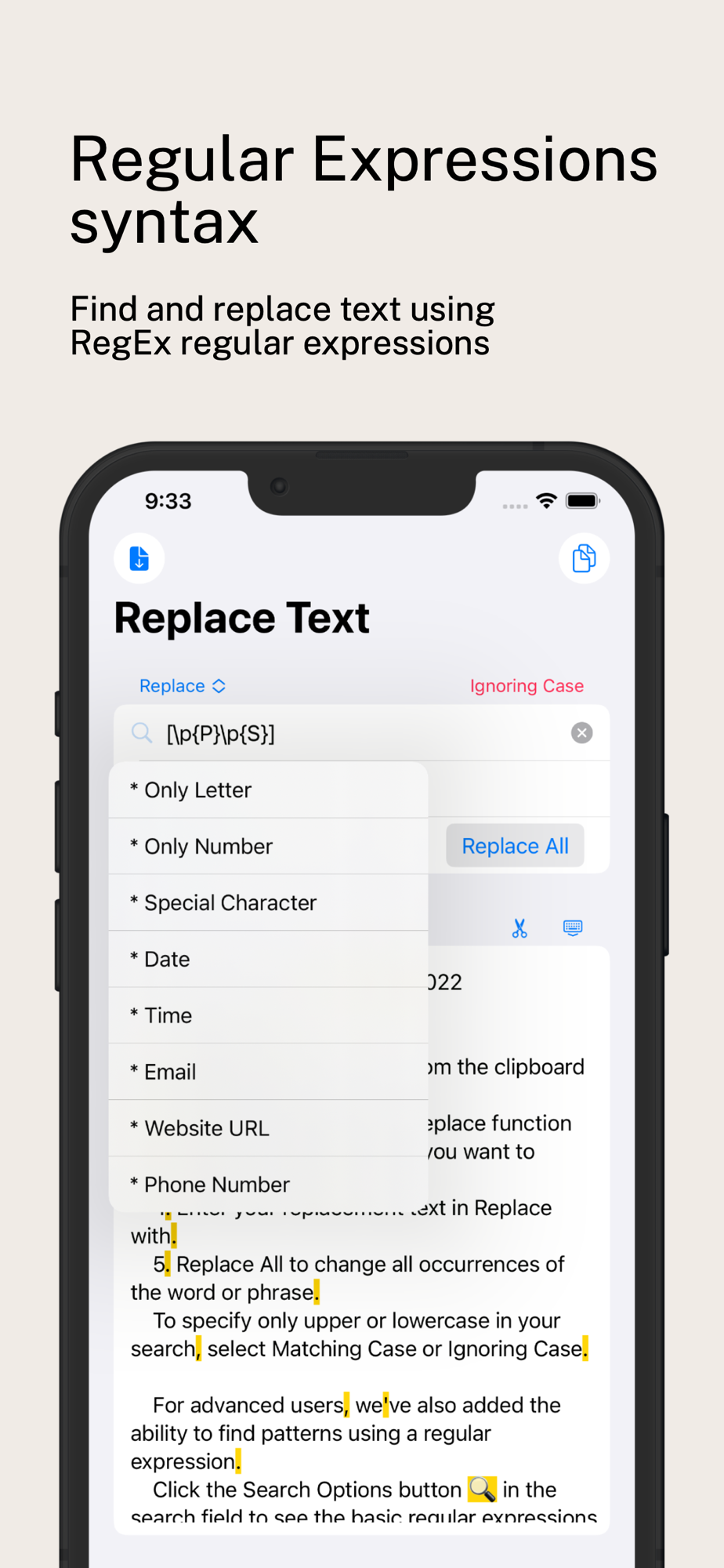 For advanced users, we've also added the ability to find patterns using a regular expression.