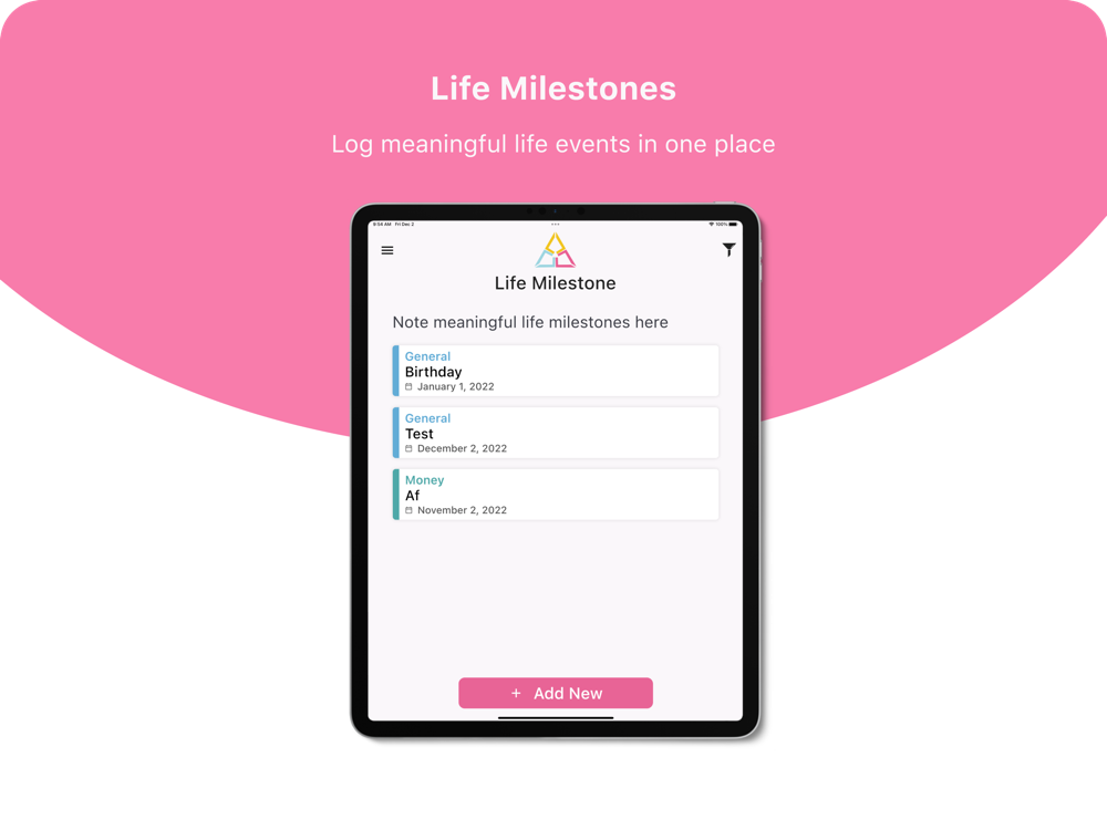 • Log meaningful Life Milestones