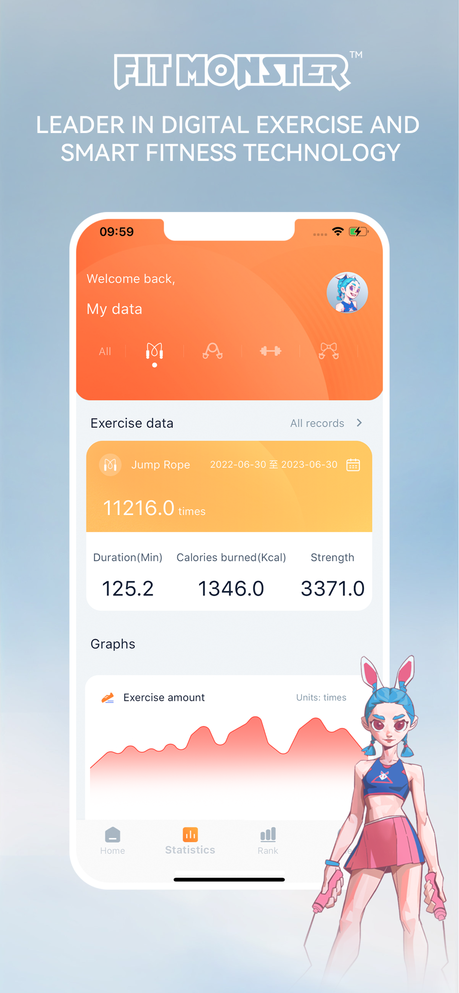 Fit Monster is a fitness training APP that is used in conjunction with smart home appliances such as Jump rope, dumbbells, AB wheel. It can accurately obtain heart rate and calorie consumption data during training in real time and record each training session to the cloud to provide visualized statistical analysis of data and long-term data storage.