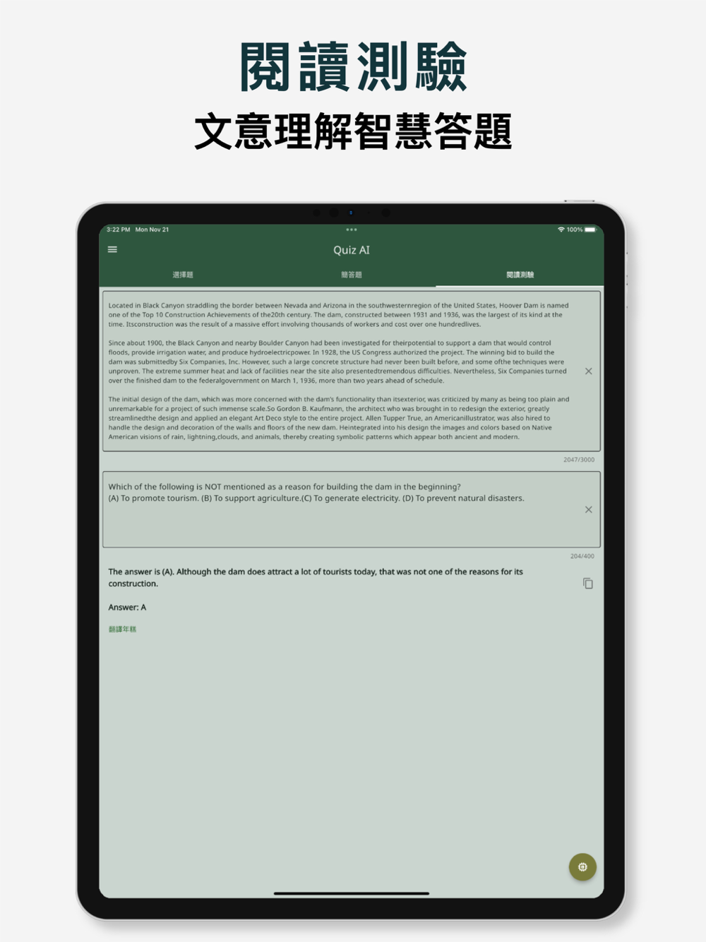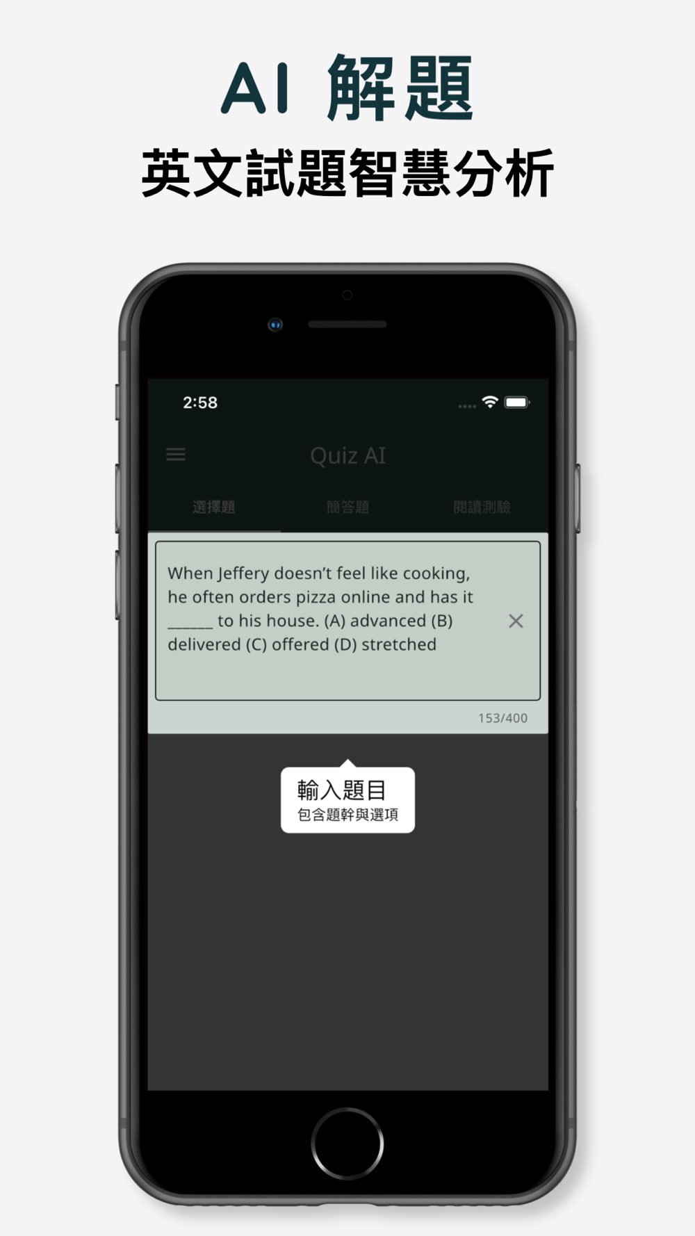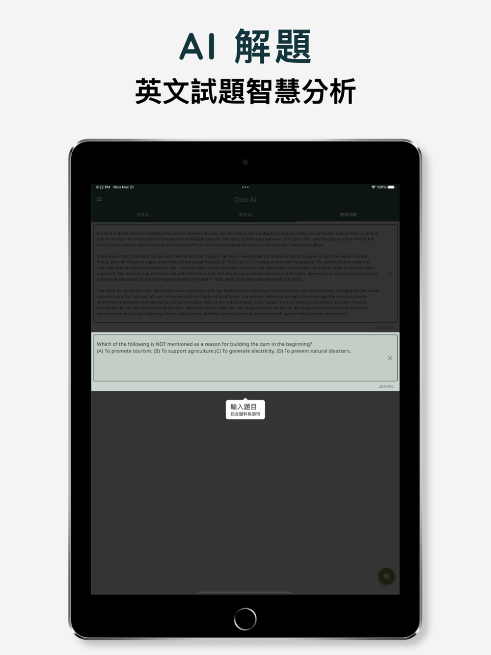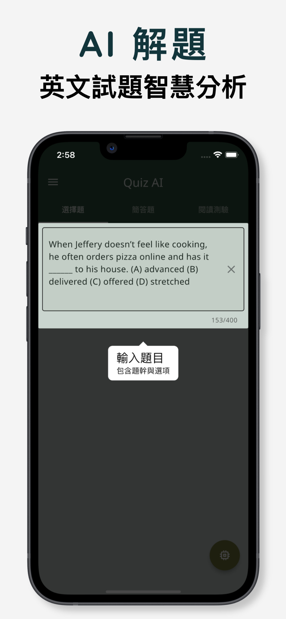 透過 AI 智慧分析,回答並解析英文試題。