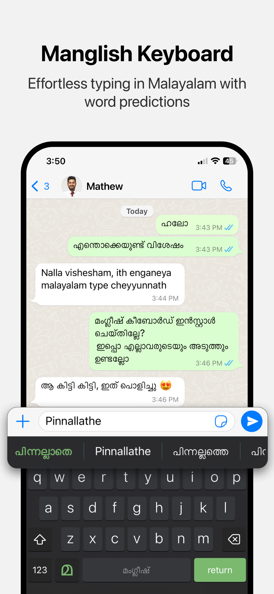 Manglish Keyboard is a keyboard extension that makes Malayalam typing super easy: