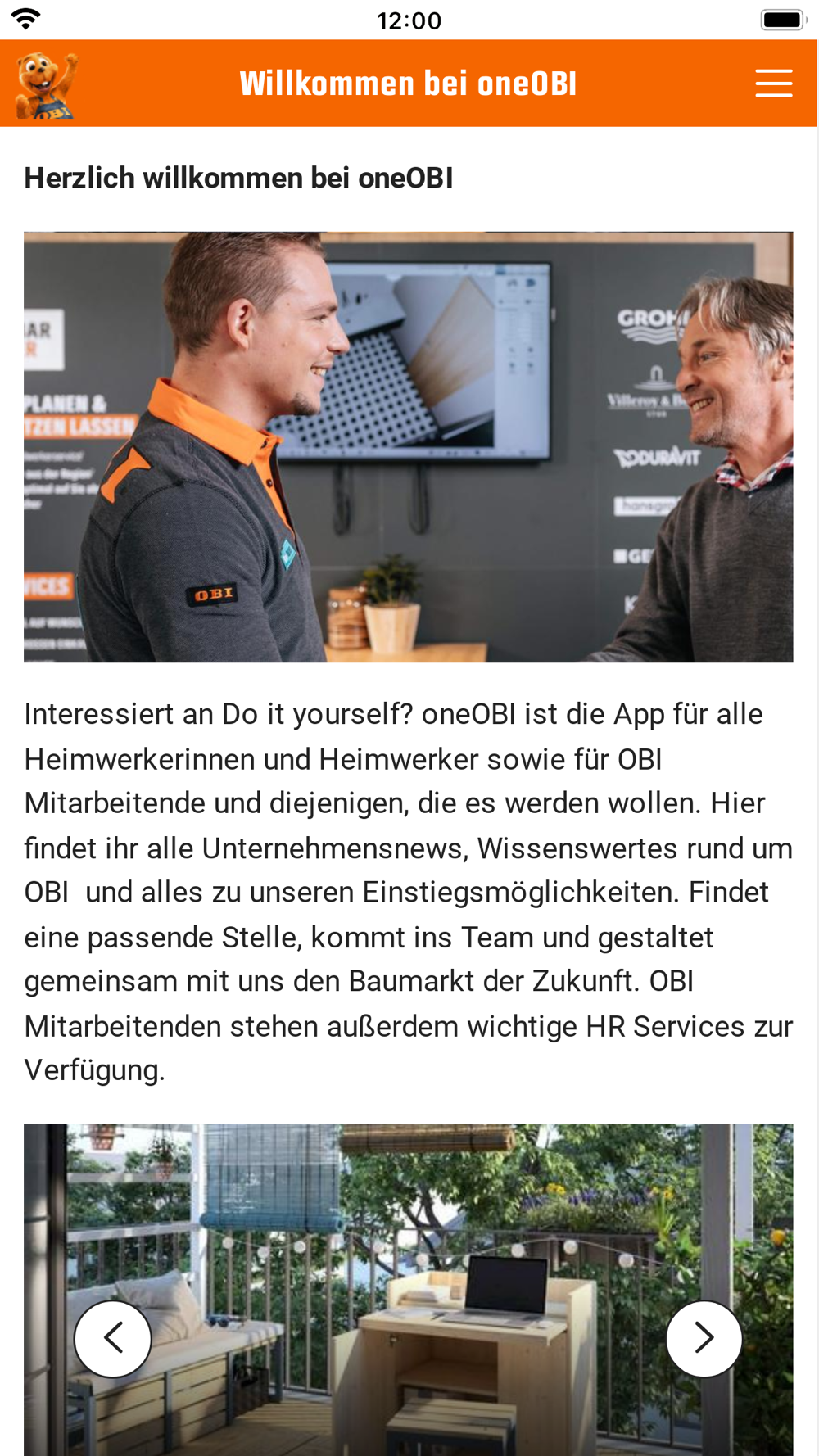 Interessiert an Do it yourself? oneOBI ist die App für alle Heimwerkerinnen und Heimwerker sowie für OBI Mitarbeitende und diejenigen, die es werden wollen. Hier findet ihr alle Unternehmensnews, Pressemitteilungen, Facts und Figures rund um OBI und alles zu unseren Einstiegsmöglichkeiten. Findet eine passende Stelle, kommt ins Team und gestaltet gemeinsam mit uns den Baumarkt der Zukunft. Berechtigten Nutzerinnen und Nutzern stehen außerdem wichtige HR Services zur Verfügung.