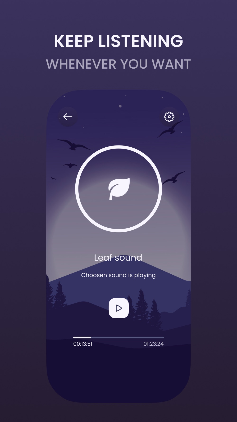 Choose the category that suits your mood and choose a nature sound you like or special frequency sounds