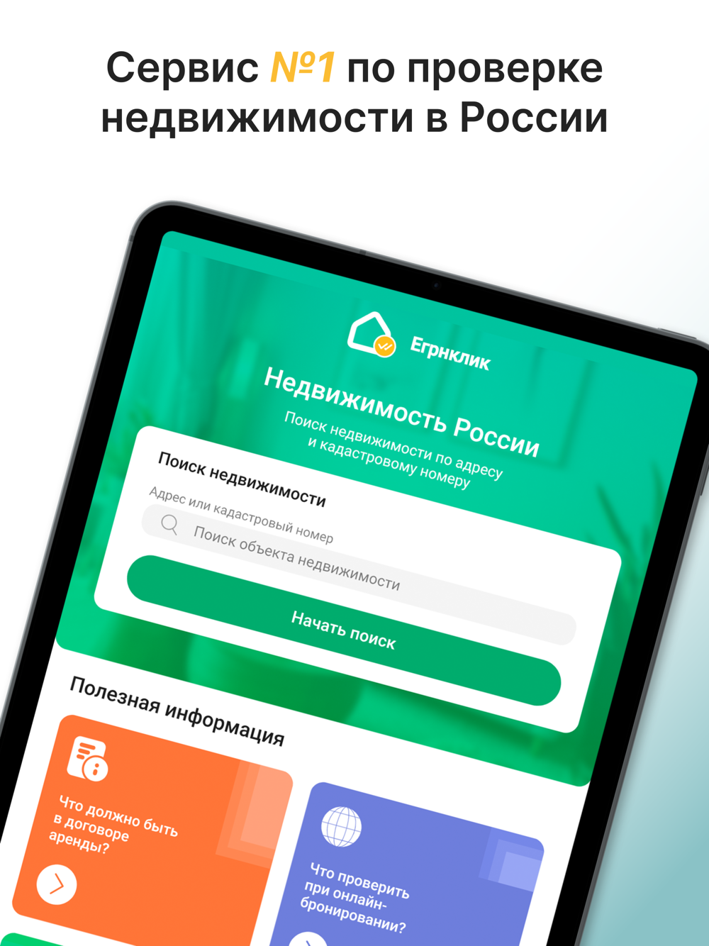 Приложение «ЕГРН клик» позволяет получить комплексную информацию о любом объекте недвижимости в РФ на основе официальной информации из Росреестра, базы ФССП и других открытых государственных источников. Для получения информации достаточно указать адрес объекта недвижимости или кадастровый номер.
